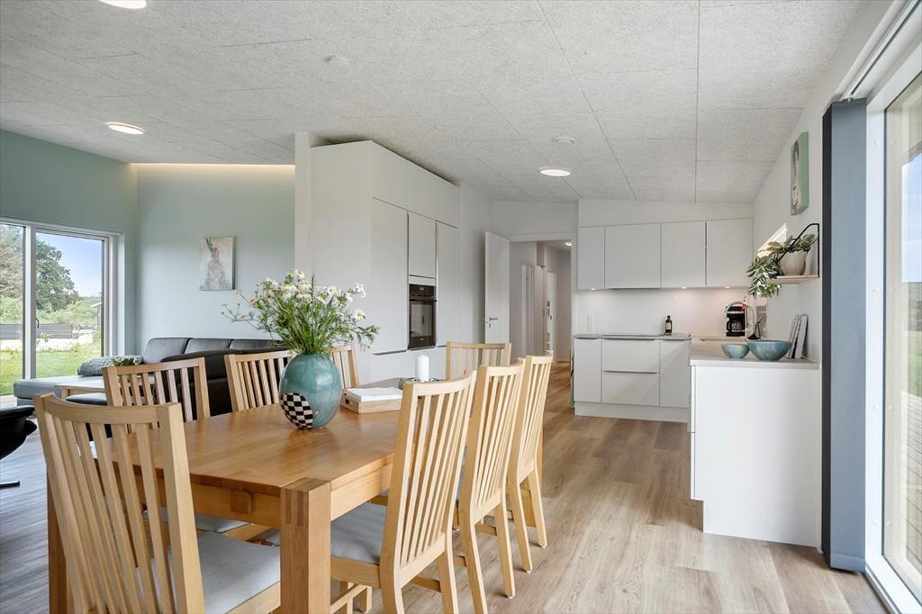 Die Wohnatmosphäre ist hell und einladend. Die moderne Einrichtung strahlt vom Moment des ersten Betretens an viel Ruhe aus und bietet beste Voraussetzungen für das wertvolle Beisammensein im Familienkreis. Große Fensterpartien lassen viel Tageslicht durch die Räume strömen und schaffen eine schöne Verbindung zwischen dem Hausinneren und der Natur. Dadurch genießt du die Morgensonne, das Vogelgezwitscher und die ruhige Urlaubsatmosphäre sowohl auf dem Sofa als auch auf der Terrasse.