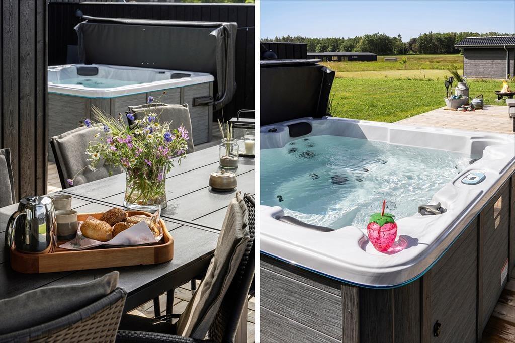 Falls dir der Sinn eher nach einer abendlichen Wellnesseinheit steht, kannst du den Tag auf luxuriöse Weise in deinem privaten Outdoor-Whirlpool ausklingen lassen. Das warme, sprudelnde Wasser und die Abendstille ermöglichen es dir, dich vollständig zu entspannen - am bestem mit deinem Herzensmenschen an deiner Seite.