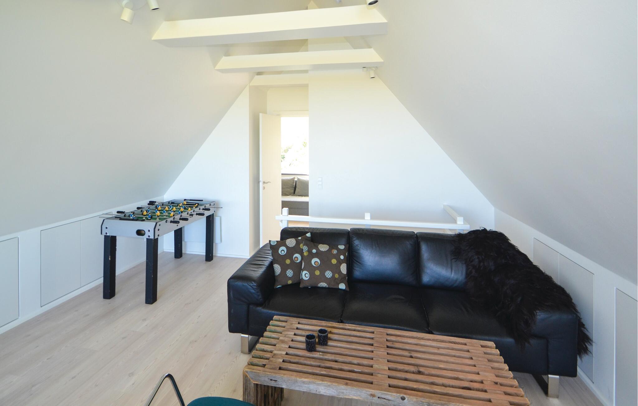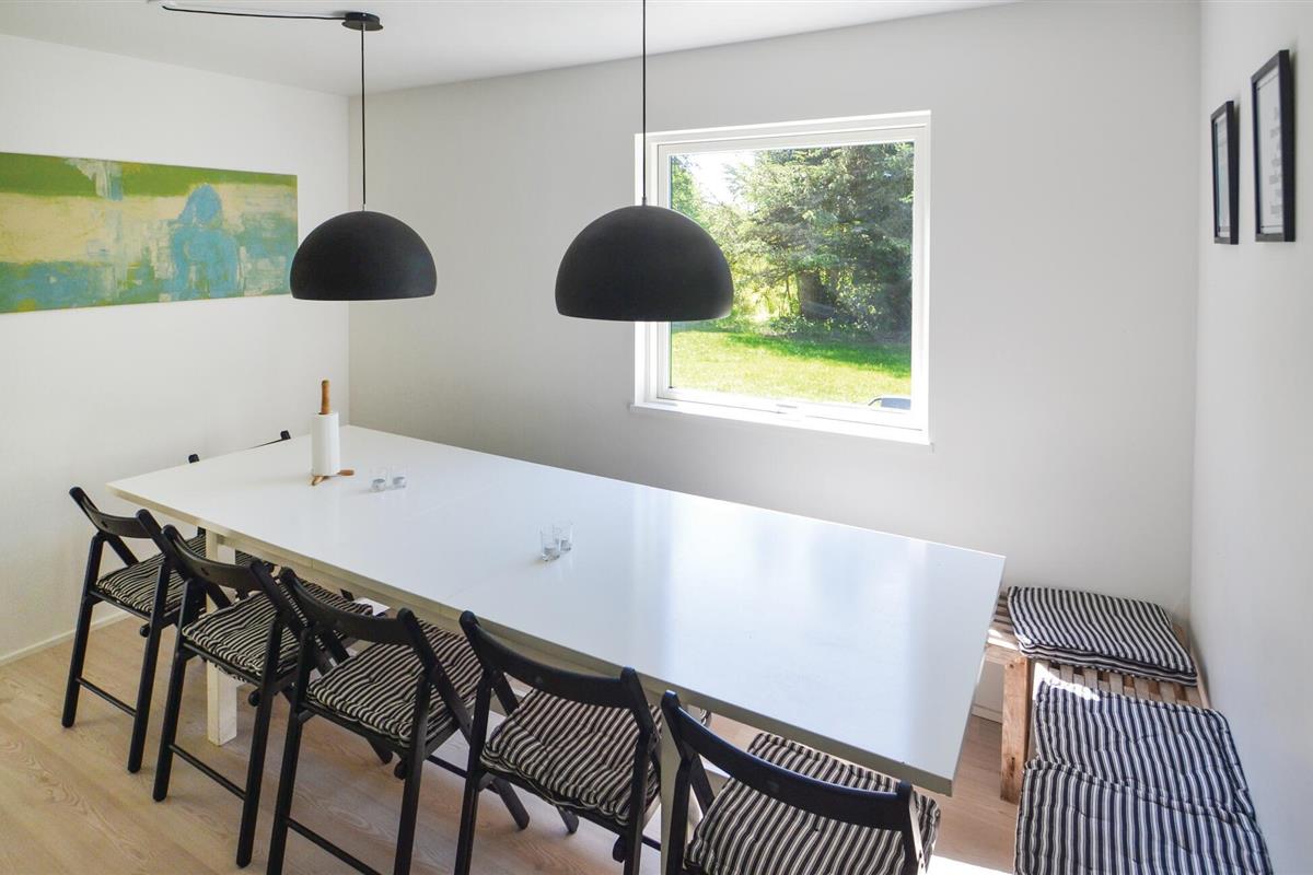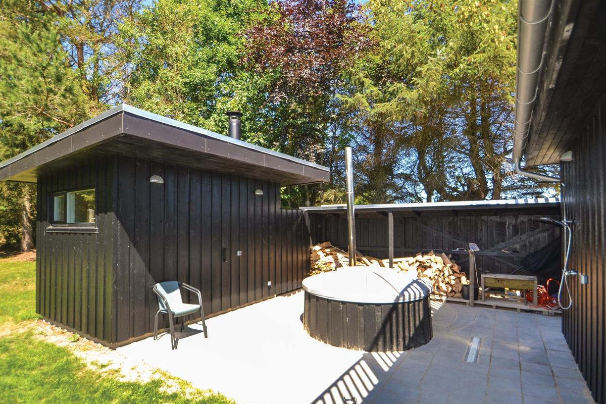 In Gjerrild op Norddjursland ligt dit mooie vakantiehuis op een afgesloten terrein met een verwarmd zwembad, een buitensauna en een prachtig uitzichtterras op de 1e verdieping. Het huis is zeer goed ingericht in lichte kleuren en een minimalistische stijl. Vanuit de grote keuken-woonkamer met houtkachel en biljarttafel leidt een trap naar de 1e verdieping, waar de woonkamer met zichtbare balken en een groot raam prachtig licht en een mooi uitzicht op het Kattegat biedt. Vanuit de keuken-woonkamer heeft u toegang tot het grote terras aan meerdere zijden van het huis, waar u tot laat in de avond kunt zitten. Aan de ene kant van het huis is de wellnessruimte en aan de andere kant is de vispoetsplaats voor uw vangst uit de kust.