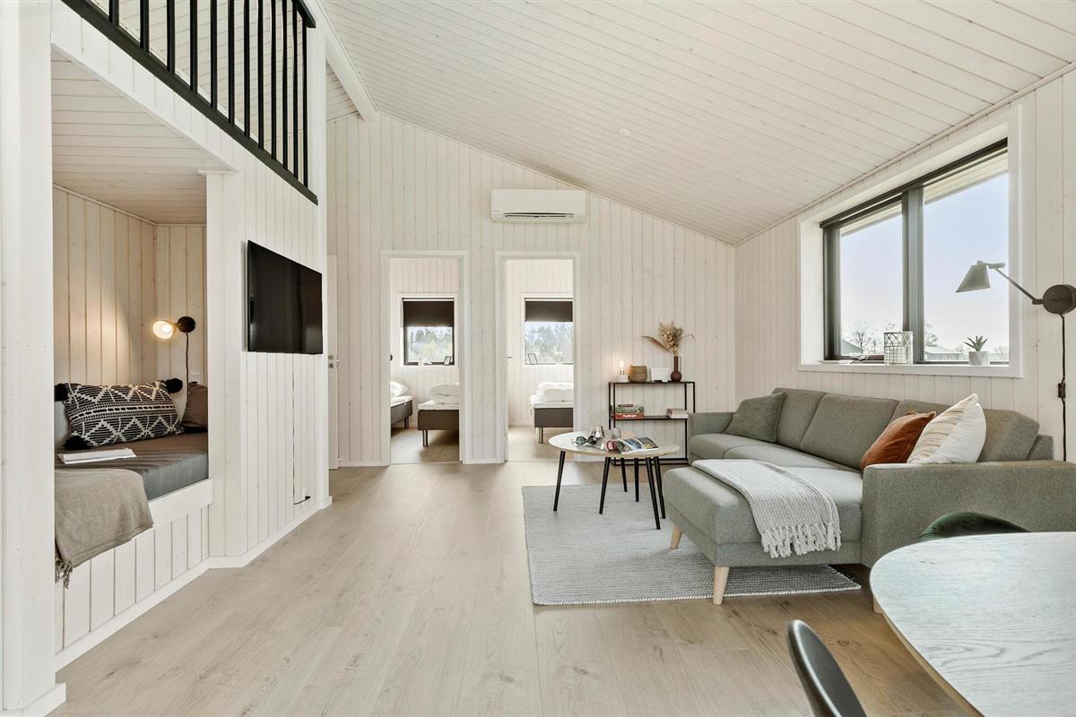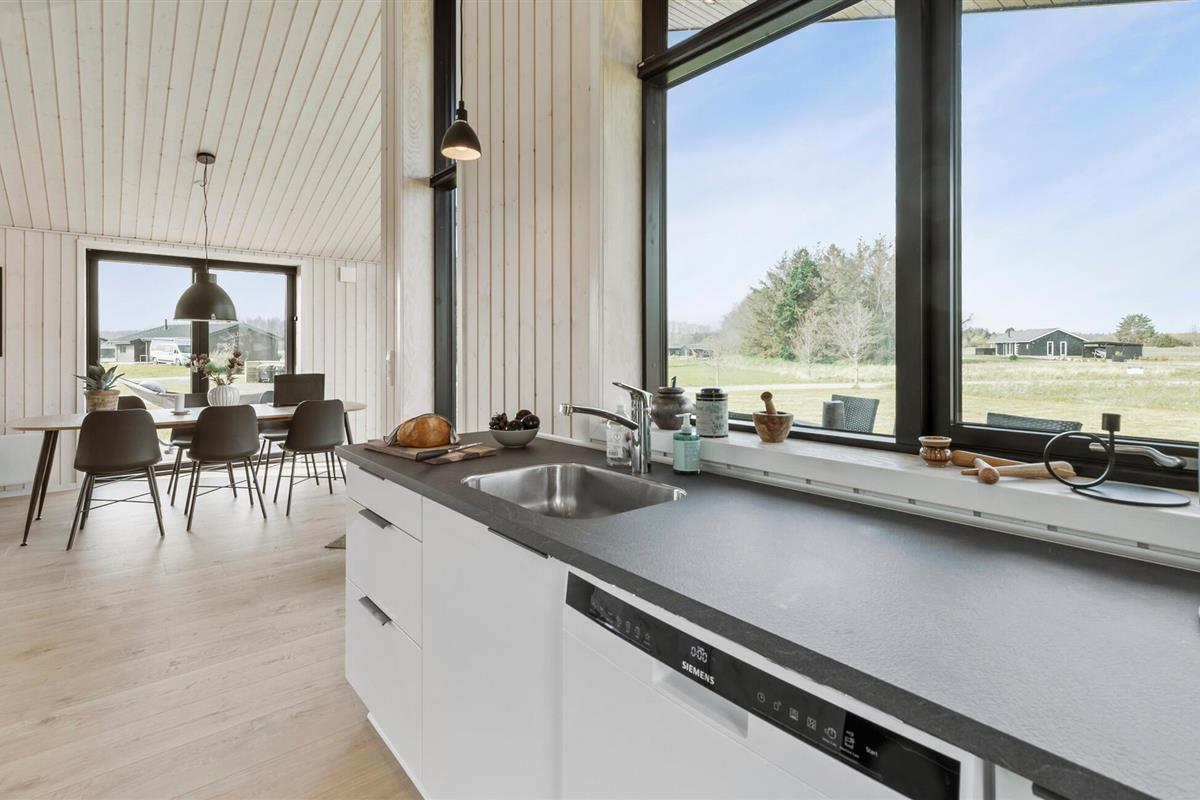 Het leven binnen en het leven in de tuin zijn verbonden door de grote panoramische ramen en laten je gemakkelijk naar buiten stappen, waar grote delen van het huis omgeven zijn door een prachtig houten terras, dat je uitnodigt om buiten te barbecueën en te zonnebaden.