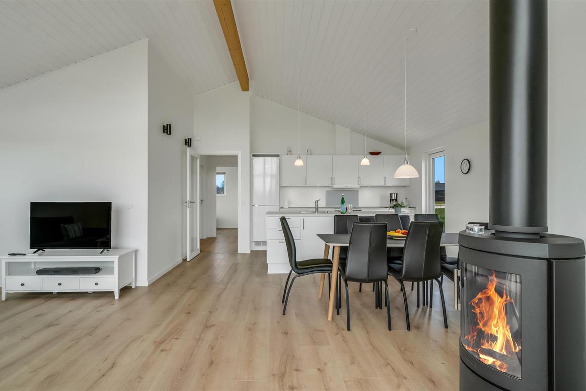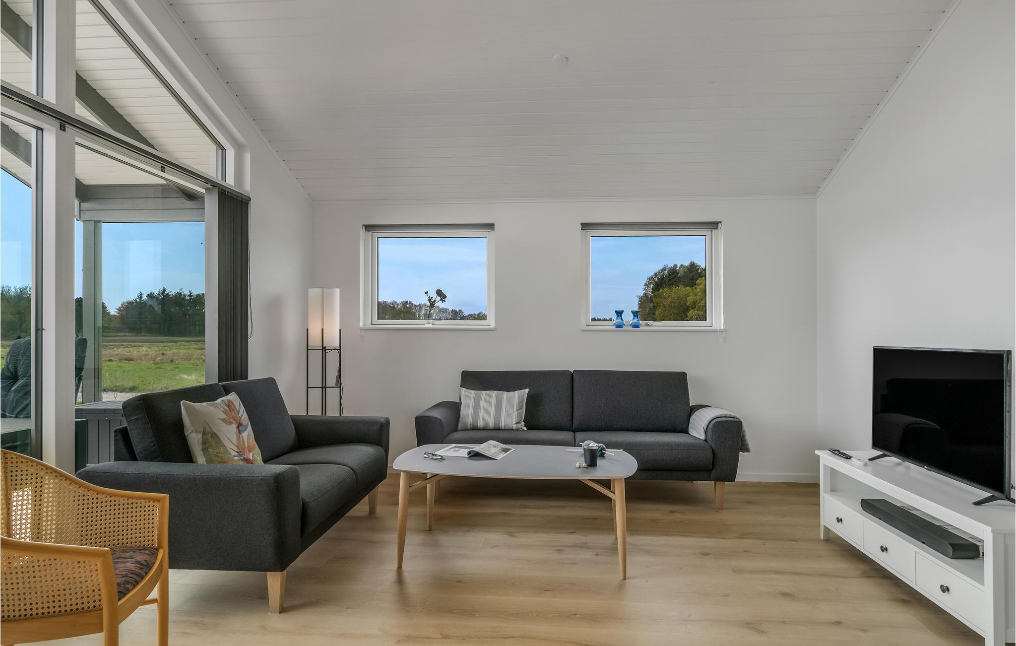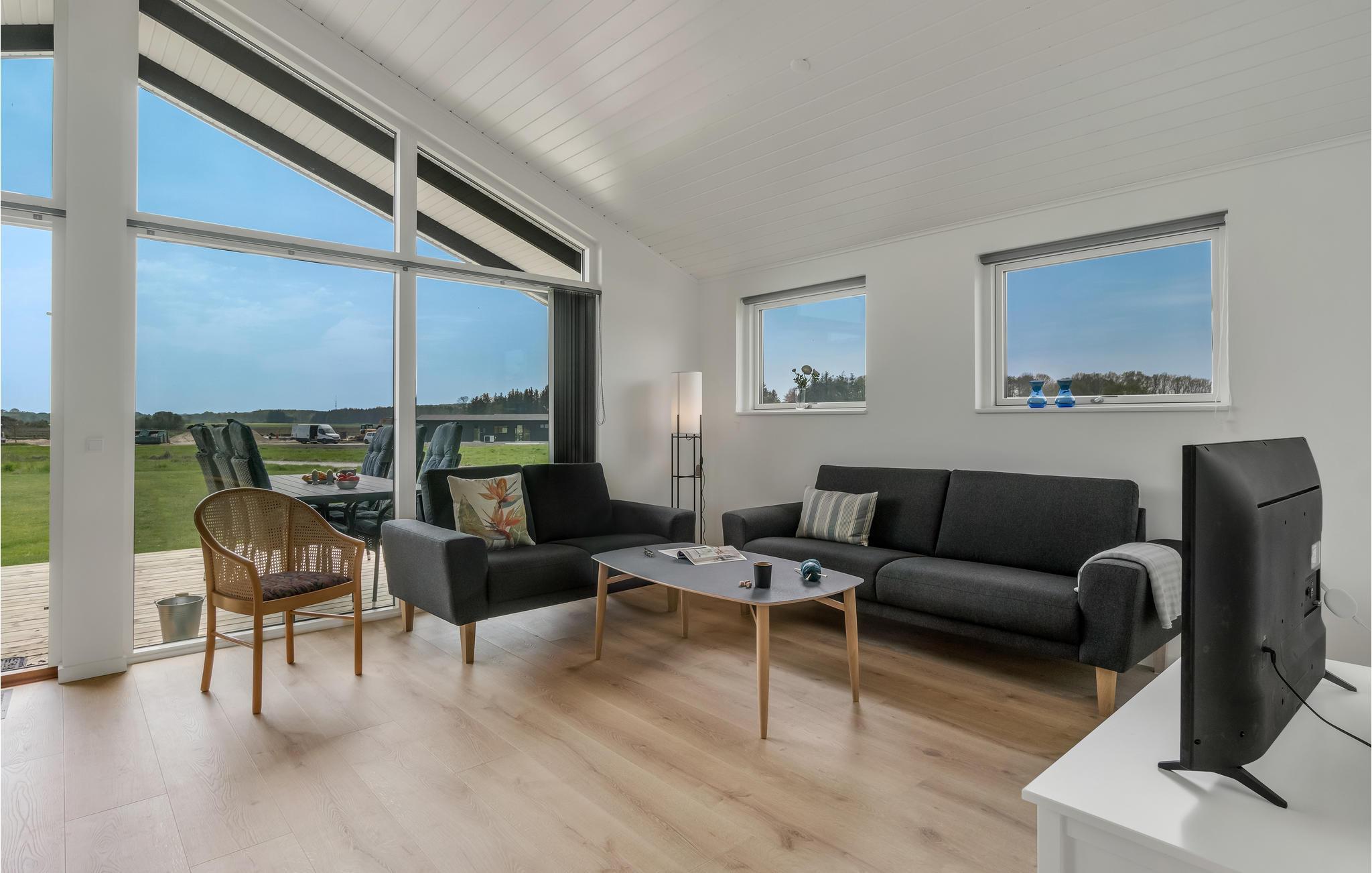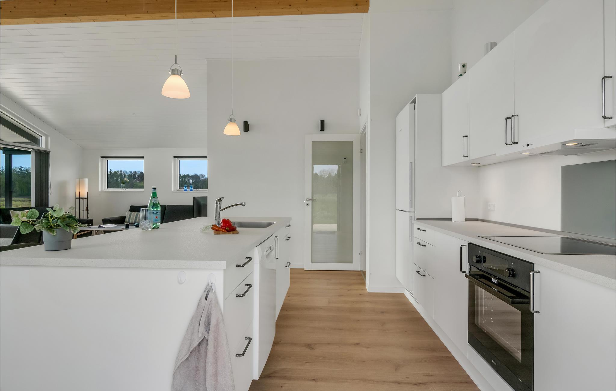 Breng uw vakantie niet ver van het strand door in dit exclusieve vakantiehuis. Maak het uzelf comfortabel met uw geliefden in de lichte kamers van het huis. De smaakvolle, moderne inrichting en subtiele kleuren zorgen voor een rustige sfeer waarin u fantastisch kunt ontspannen. De grote panoramische ramen zorgen ervoor dat u optimaal kunt genieten van het geweldige uitzicht op het omliggende landschap. De comfortabele zithoek nodigt uit tot lange avonden in de woonkamer na actieve dagen. Klets tot laat bij het gezellige geknetter van de vlammen in de open haard. Stap 's ochtends vroeg het terras op, laat uw blik over de weilanden dwalen terwijl u van uw eerste koffie geniet en geniet van de eerste zonnestralen terwijl de vogels kwetteren.