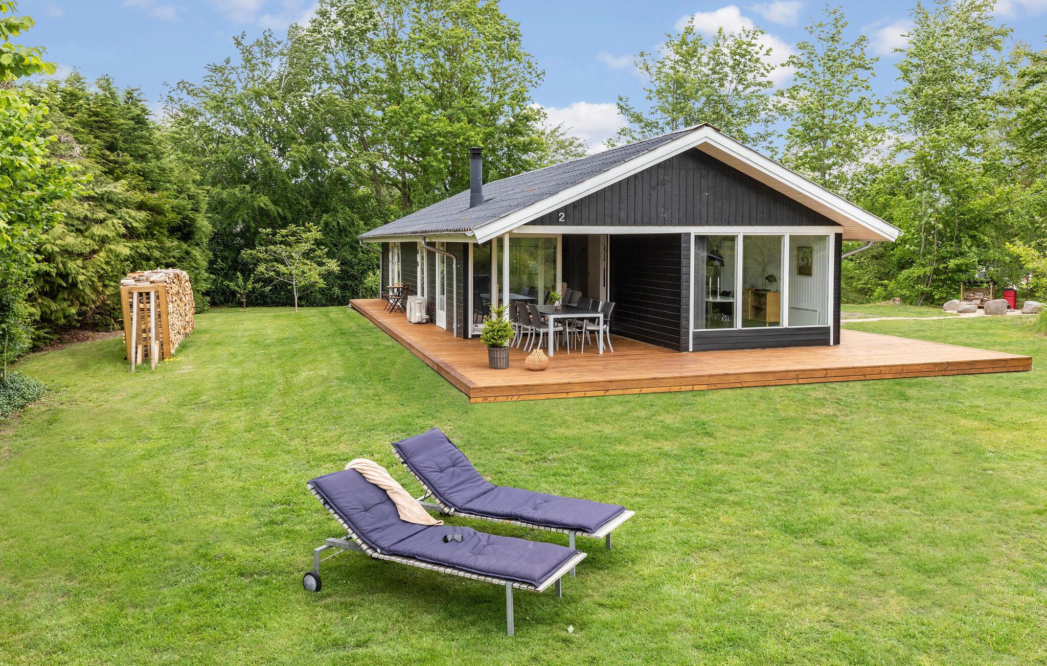 Dit verzorgde vakantiehuis in Gjerrild Nordstrand biedt sauna, massagebad en een groot terrein met vuurplaats dichtbij het zandstrand.