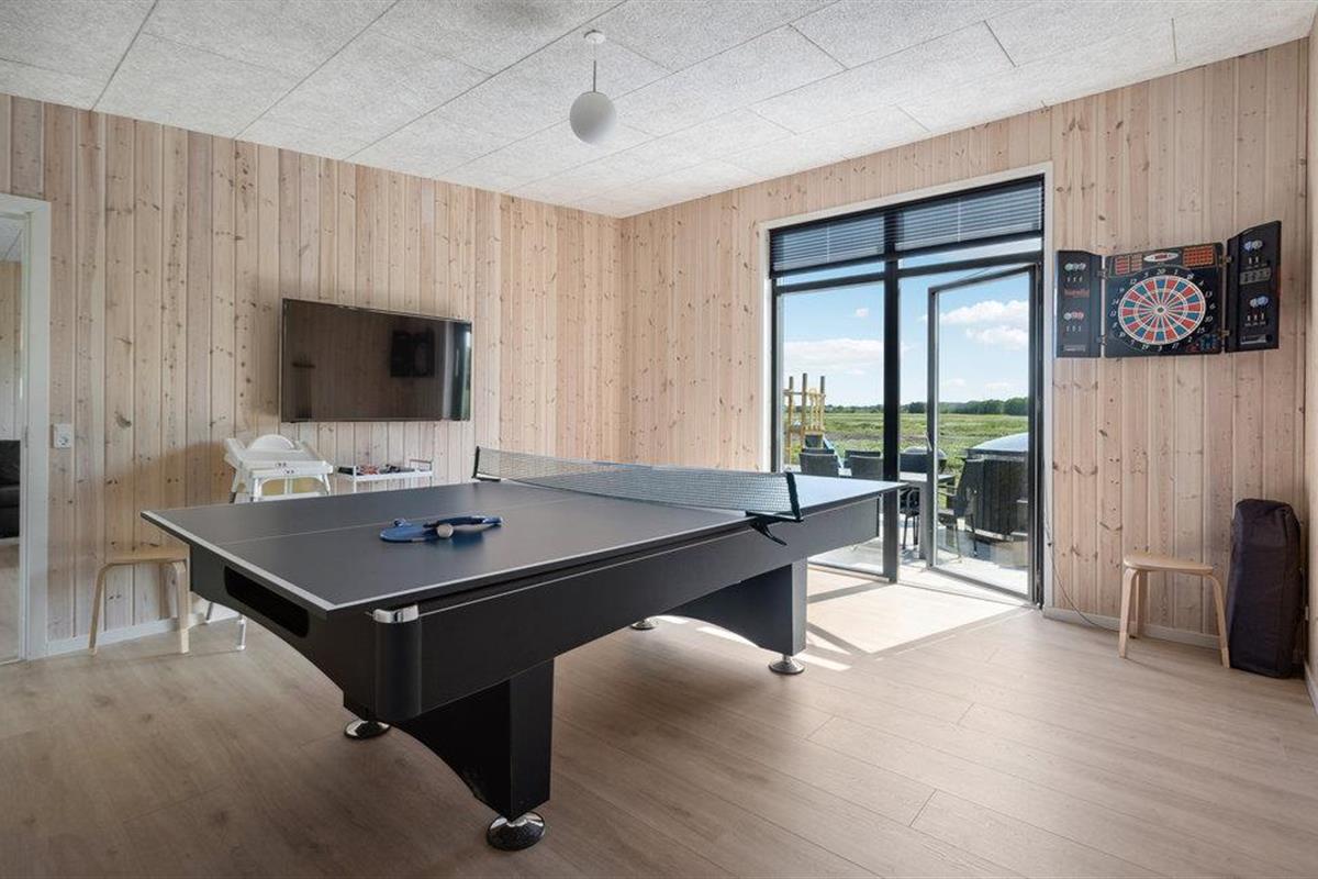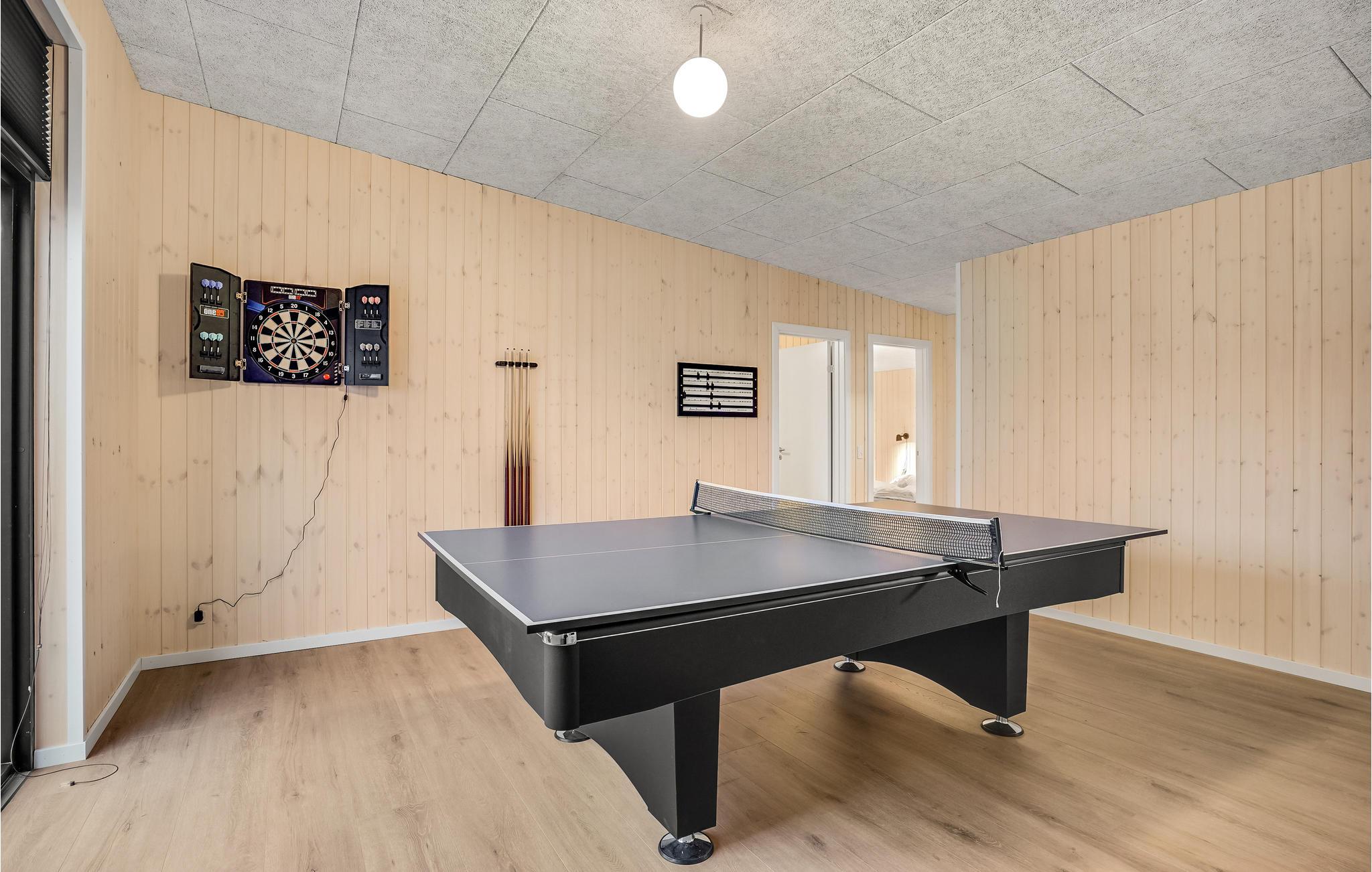 Wilt u met uw uitgebreide familie of meerdere vriendenfamilies reizen en ontspannen en bijkomen van uw hectische dagelijkse leven? Dan bent u in dit mooie en grote vakantiehuis aan het juiste adres. De accommodatie biedt alles wat u zich maar kunt wensen. Kijk uit naar een gezellige en onderhoudende tijd in de grote woonkamer, die koken, eten, spelen en ontspannen combineert. U kunt zich vermaken in de activiteitenruimte, waar tafeltennis, biljart en darts op u wachten voor leuke momenten. De wellnessruimte verwent u zowel in het huis als op het terras. Verheug u op een whirlpool en sauna binnen, waar u bij slecht weer comfortabel gebruik van kunt maken. Maar ook 's avonds kunt u onder de sterrenhemel plaatsnemen in het warme, bruisende water van de whirlpool op het terras. Maar ook overdag nodigt het terras uit tot vertoeven, barbecueën en ontspannen, terwijl uw kinderen zich vermaken op de speeltoestellen.