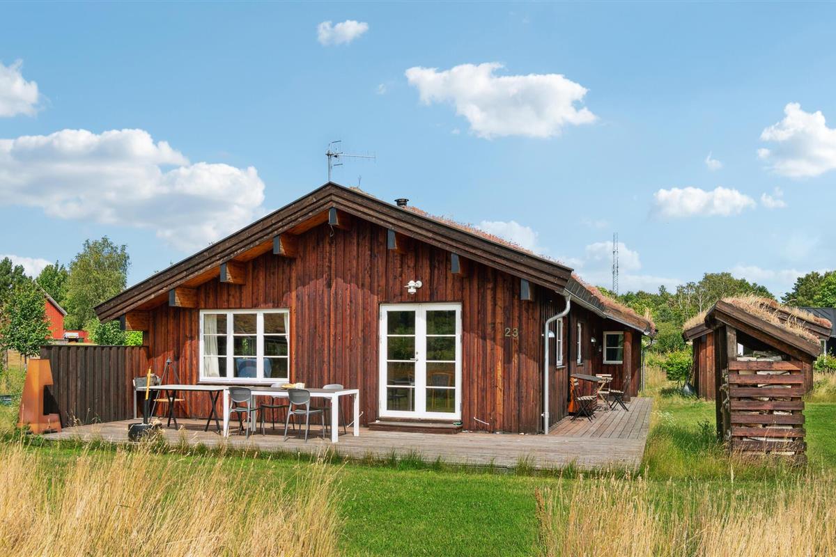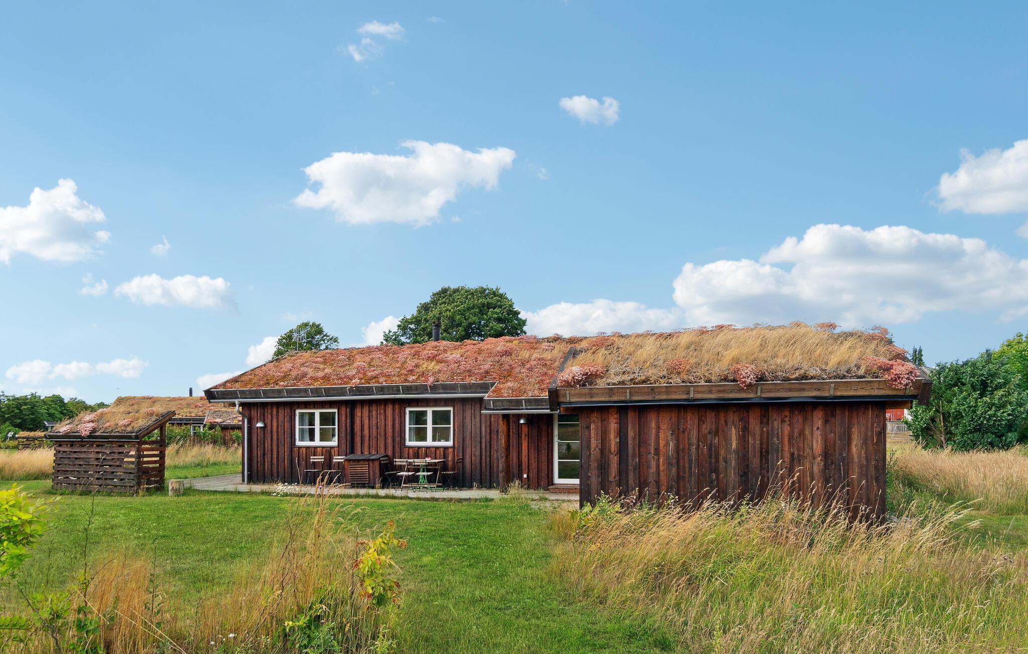Een droom van nabijheid tot de natuur en gezelligheid: dit houten huis met begroeid dak is een ware vakantieoase waar alles ontspanning en sereniteit uitstraalt. U kunt zich verheugen op heerlijke uren in de tuin, picknicks aan zee of in het bos, paddenstoelen plukken of eindeloze solitaire wandelingen door de natuur.