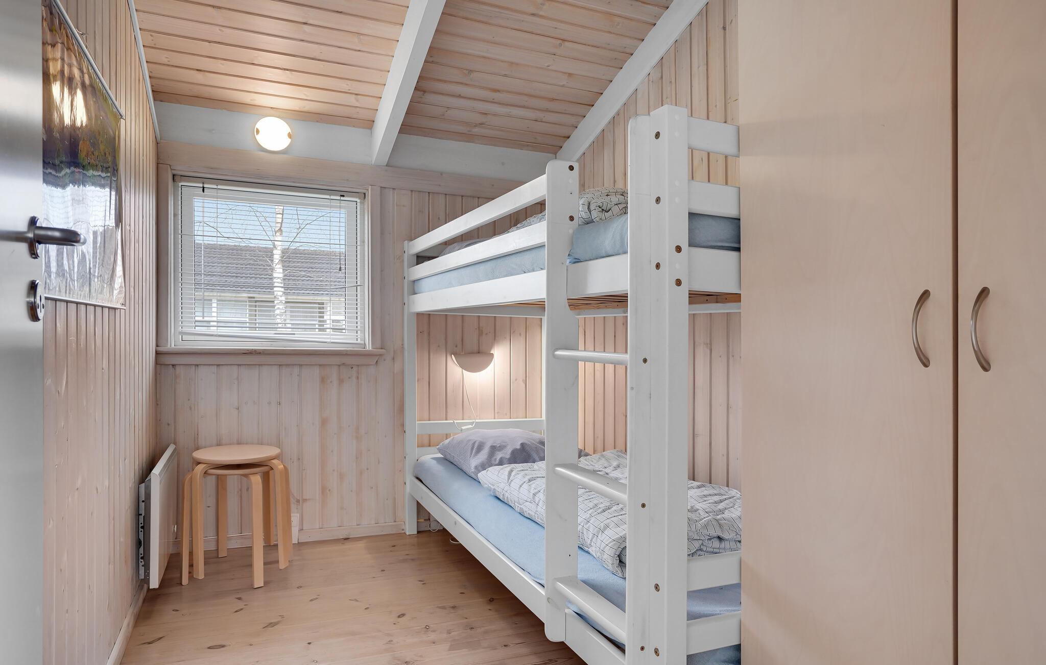 Dit aantrekkelijke vakantiehuis is omgeven door prachtige natuur op Gjerrild Nordstrand. Het huis is uitnodigend en ingericht met comfortabele meubels.