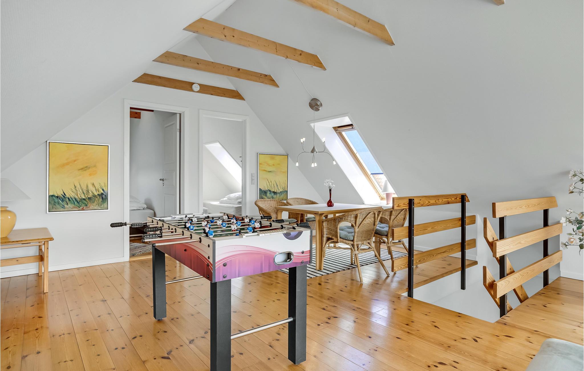 Met een oude vuurtoren en uitgestrekte velden als buren ligt dit mooie vakantiehuis op slechts 5 minuten lopen van het ondiepe zandstrand, waar je zeker een aangenaam plekje tussen de duinen zult vinden. Het ruime huis biedt genoeg ruimte voor je familie en vrienden om te genieten van een geslaagde vakantie. Het zwembad en de whirlpool zorgen voor plezier en ontspanning. In 2006 is er een mooie aanbouw gebouwd met een activiteitenruimte en 2 extra slaapkamers. De gezellige binnenplaats is ideaal voor barbecues en diners op warme avonden. Het strand nodigt je uit om het hele jaar door te ontspannen. De visgronden bij Gjerrild zijn bijzonder rijk, met forel en zalm en zeeduivel in het voorjaar.