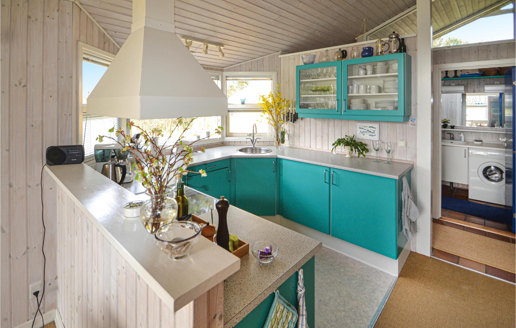 300 m van het prachtige Gjerrild Nordstrand, in het noorden van Djursland, ligt dit zeer goed onderhouden vakantiehuis. Het gazon is zeer geschikt voor balspelen. Grote ramen zorgen voor een lichte sfeer, vooral in het woongedeelte. Er is ook een alkoof en 2 mooie slaapkamers. De mooie badkamer heeft ook een sauna. Een echt gezellig vakantiehuis, u zult hier een aangenaam verblijf hebben. U zult ook genieten van het brede zandstrand en de duinafzettingen. In Gjerrild Klint vindt u zeer goede visstekken, het zijn de beste van Djursland en het diepe water begint op een paar meter van de kust. Een goede vangst is hier zeker mogelijk. In Emmedsbo Skov, een bos, leven wilde zwijnen, herten en kroonherten in een omheind gebied dat u kunt betreden. Het wandelpad bij het strand maakt deel uit van de wandelroute Nodsøstien (Noordzeepad). In Bønnerup kunt u verse vis kopen.