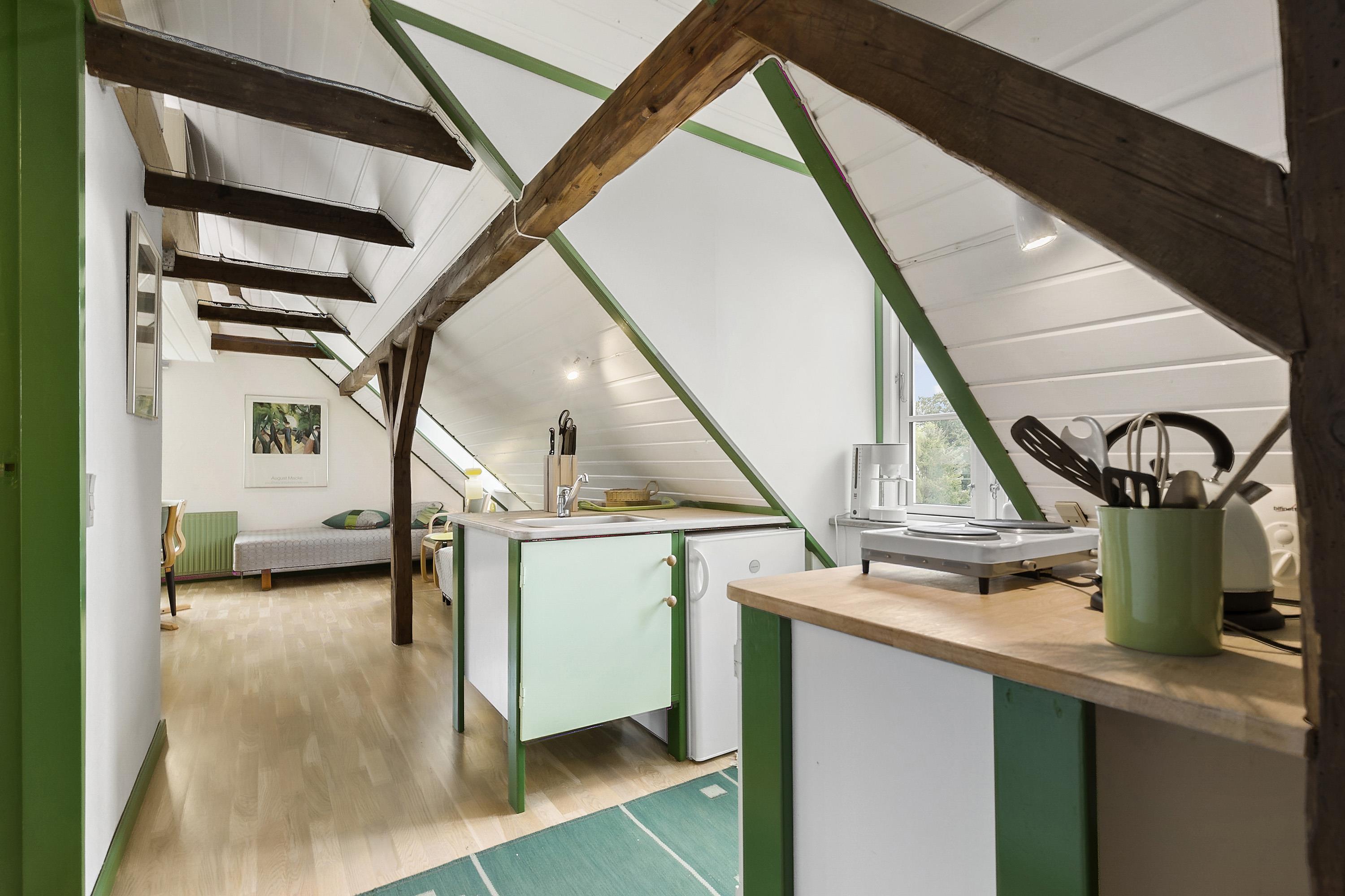 The interior design of the four apartments is humorous, personal and atmospheric, making good use of the dairy building’s many unique nooks and crannies. Everything is kept in the four colour themes that are reflected in the apartment names. The result is four holiday apartments that are unlike most holiday apartments.