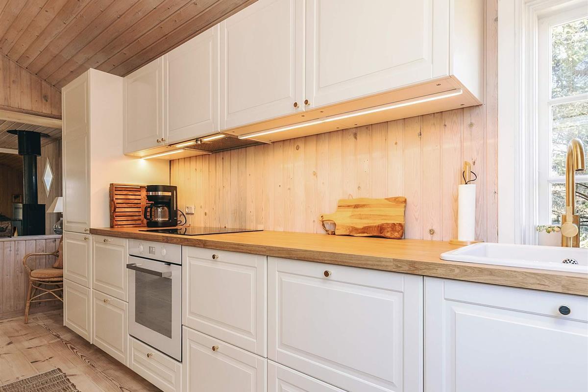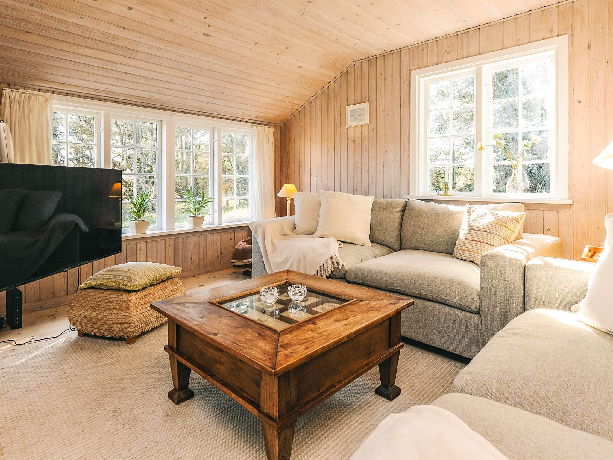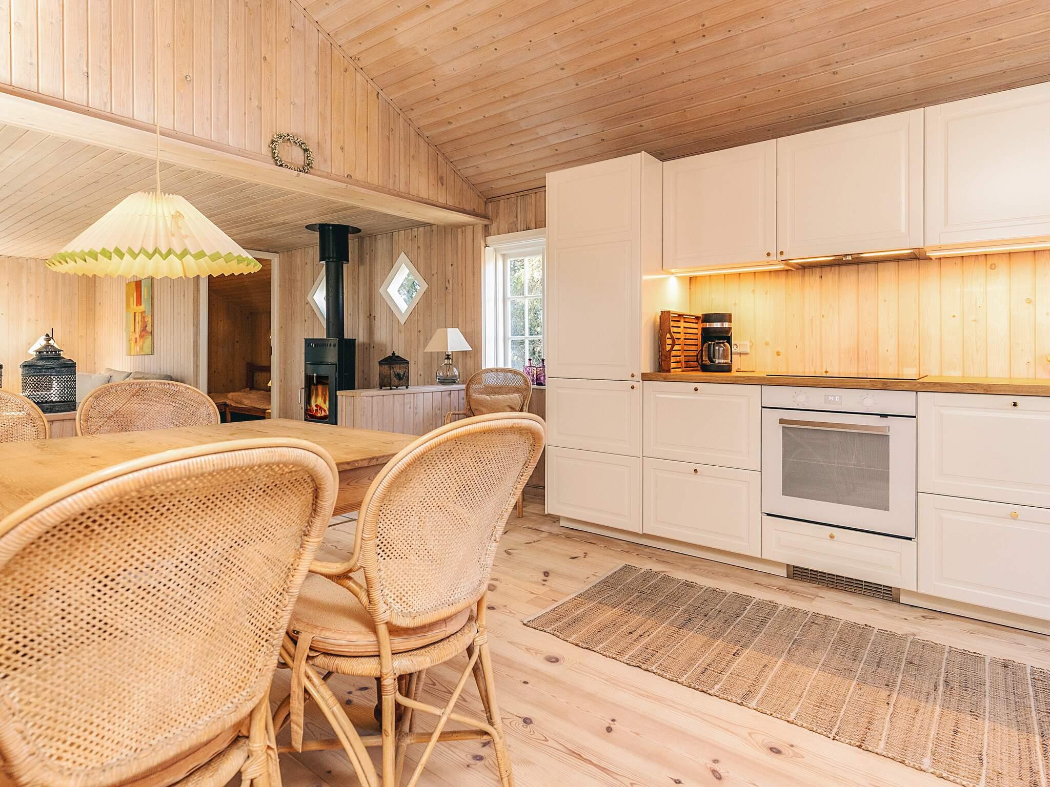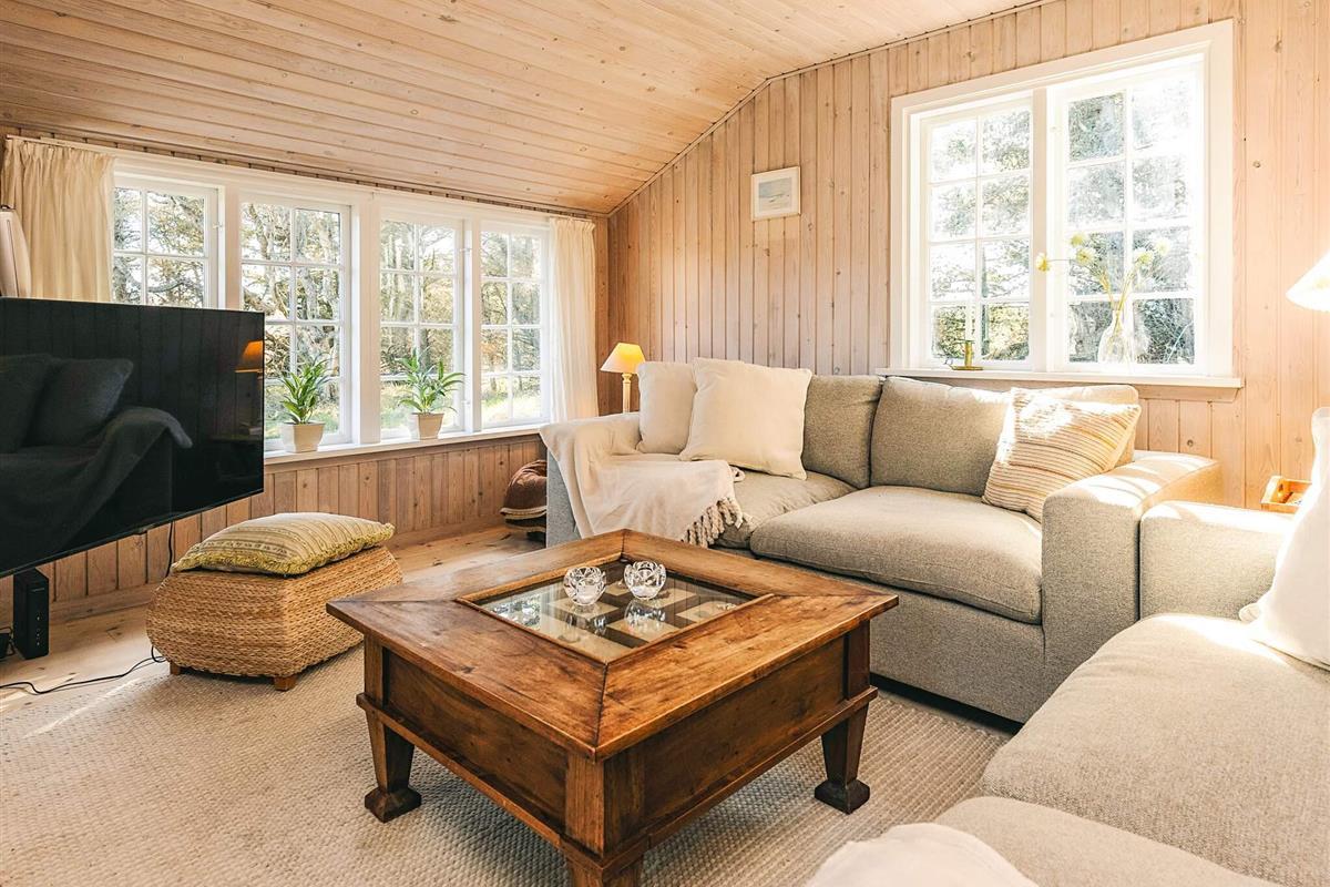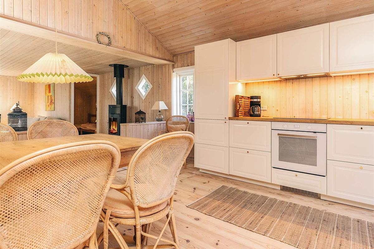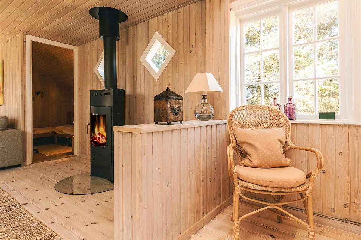 Draußen lädt das große Naturgrundstück mit Garten, Terrasse und Pavillon dazu ein, die Sonne zu genießen oder in ruhiger Umgebung zu entspannen. Die abgelegene Lage bietet Privatsphäre, während nahegelegene Restaurants und Geschäfte leicht erreichbar sind. Dieses Ferienhaus ist somit ein idealer Ausgangspunkt für Familien oder Paare, die die dänische Küste erleben möchten.