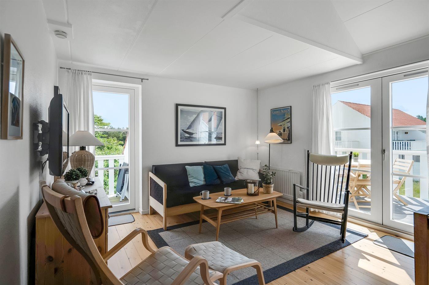 Comfortabel vakantieappartement in Skagen met moderne keuken en smart-tv, vlakbij zee en natuur.