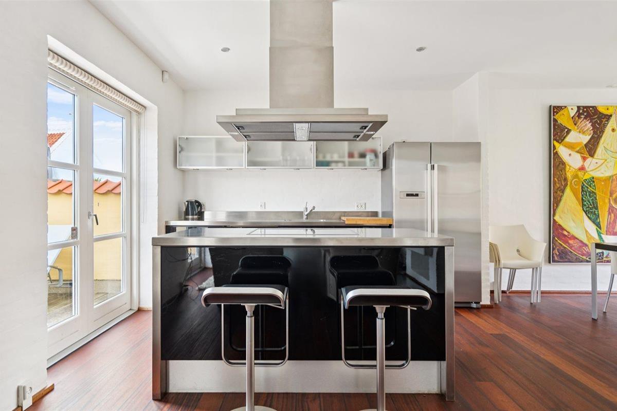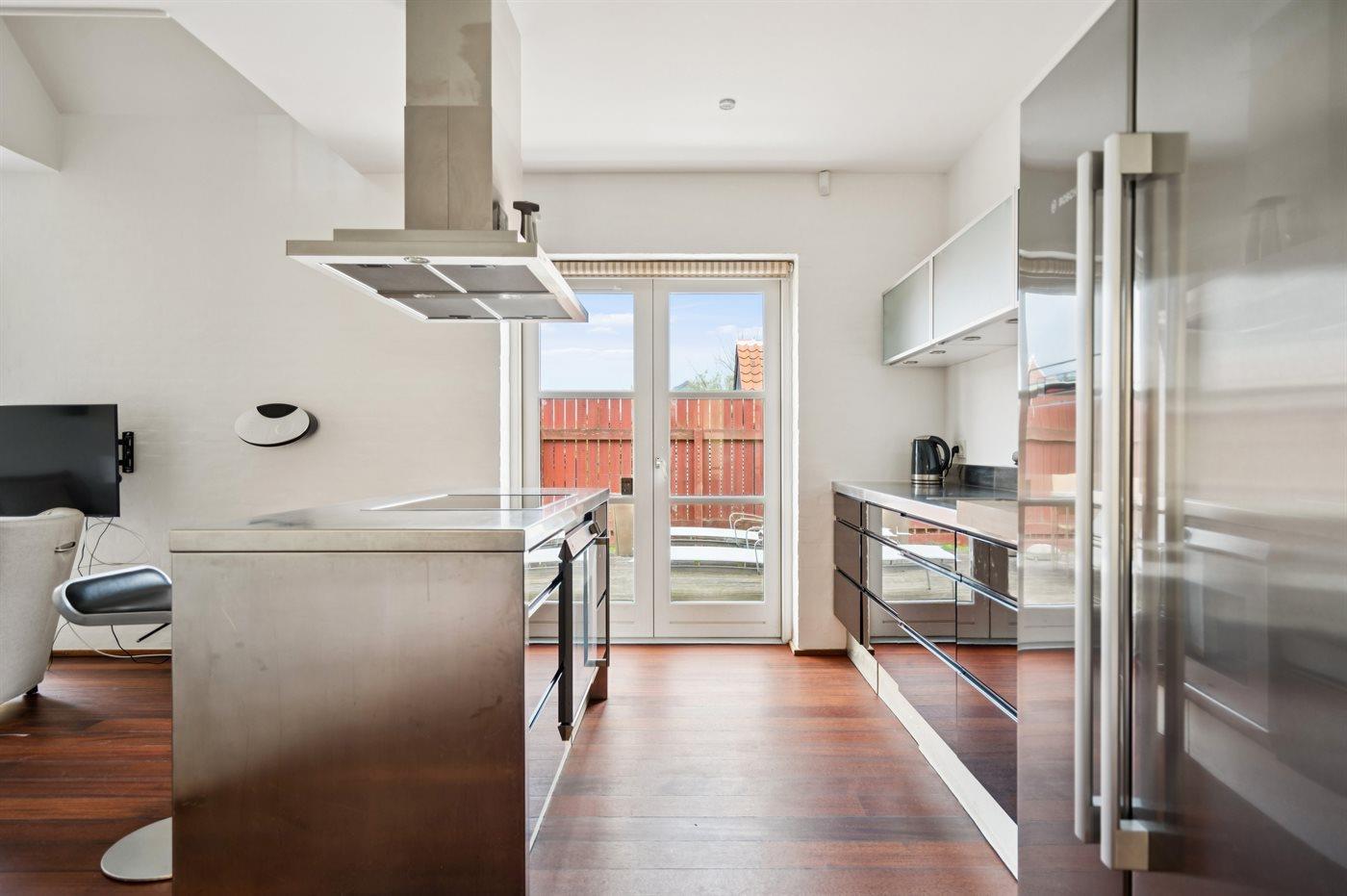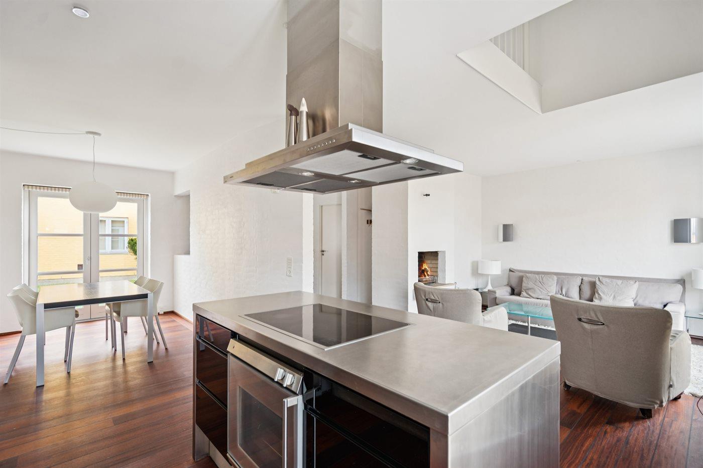 De keuken is uitgerust met koelkast Er is 4 inductiekookplaten, heteluchtoven en vaatwasser.