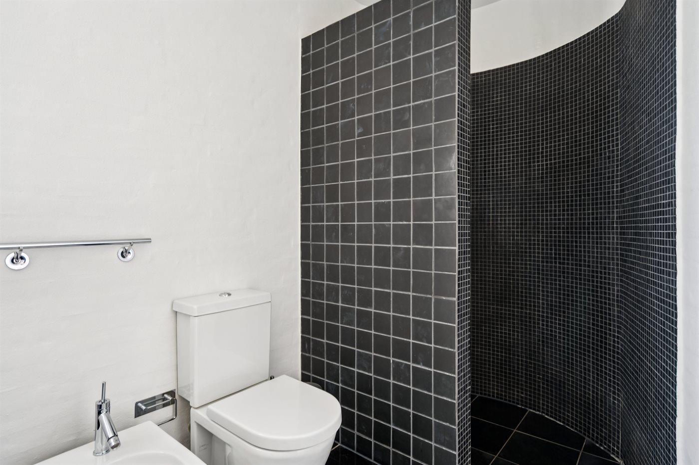 Er is 1 badkamer met douchehok en 2 toiletten, waarvan 1 gastentoilet. Er is vloerverwarming in 1 badkamer.