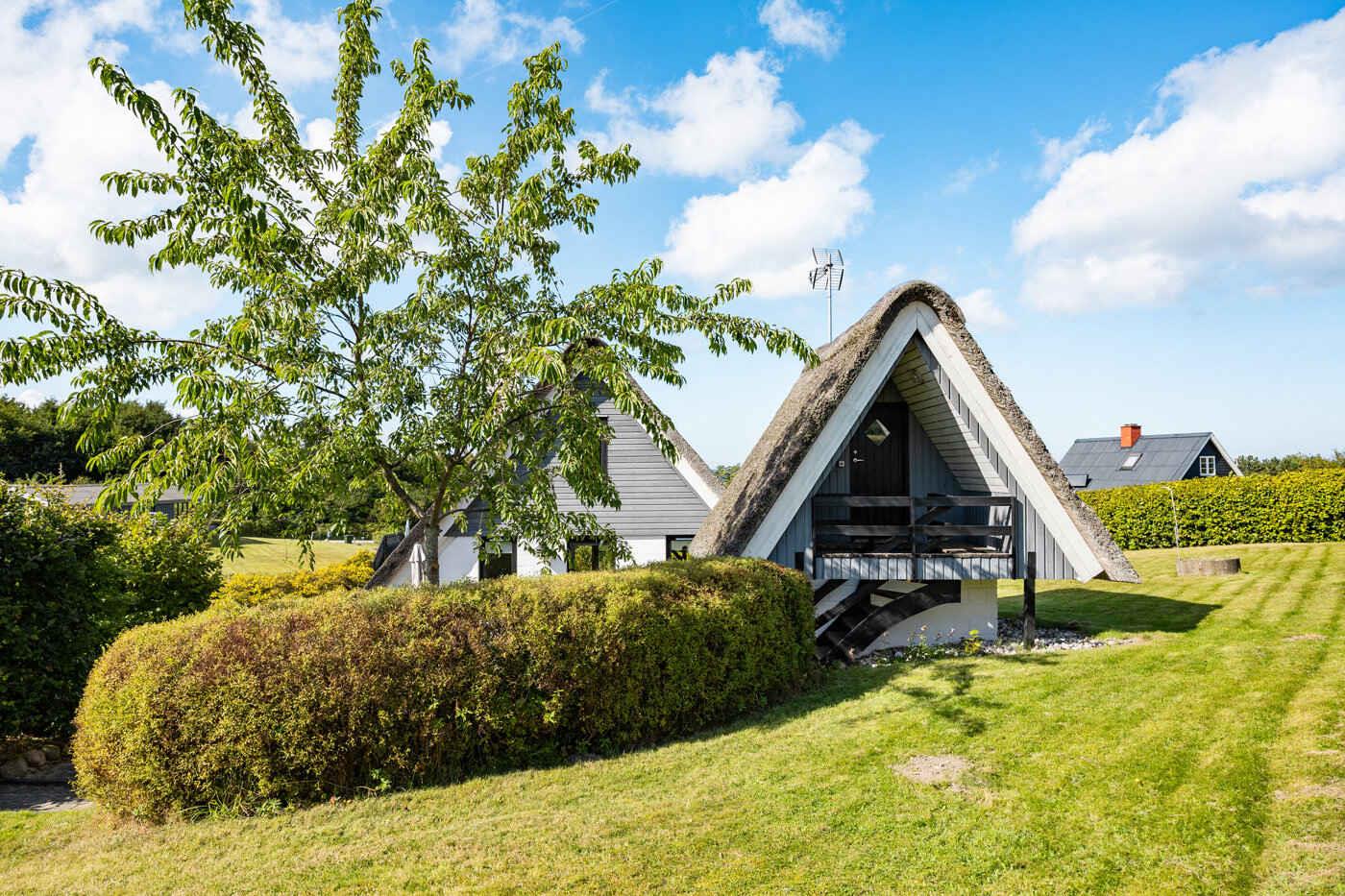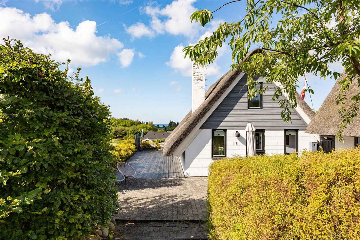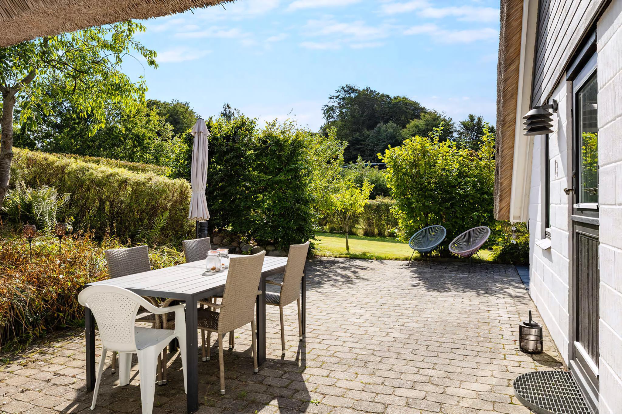 Idyllisch rietgedekt zomerhuis met zeezicht, groot terrein en dichtbij kindvriendelijk strand.