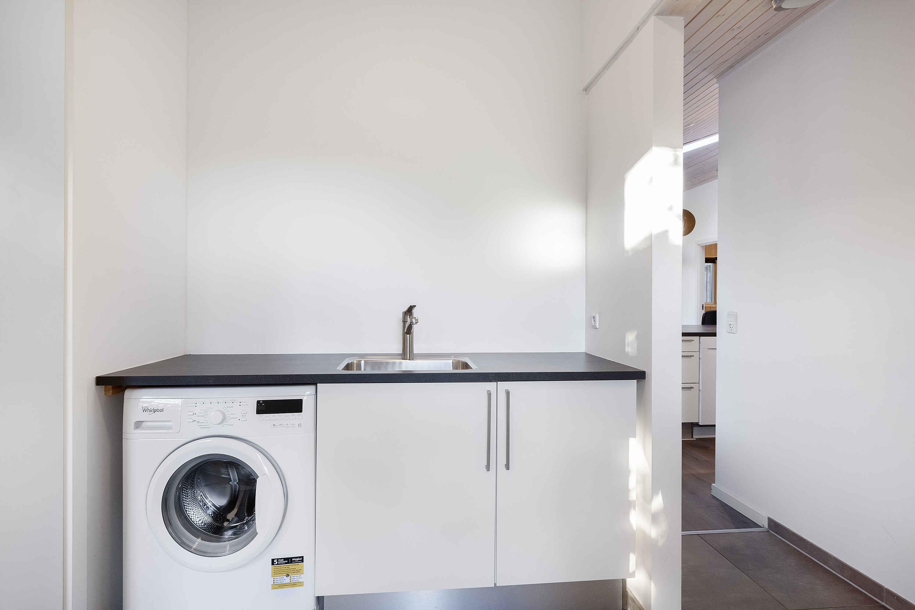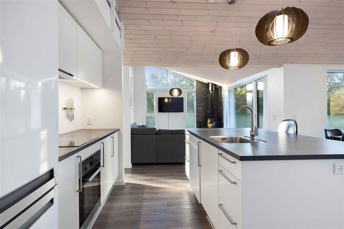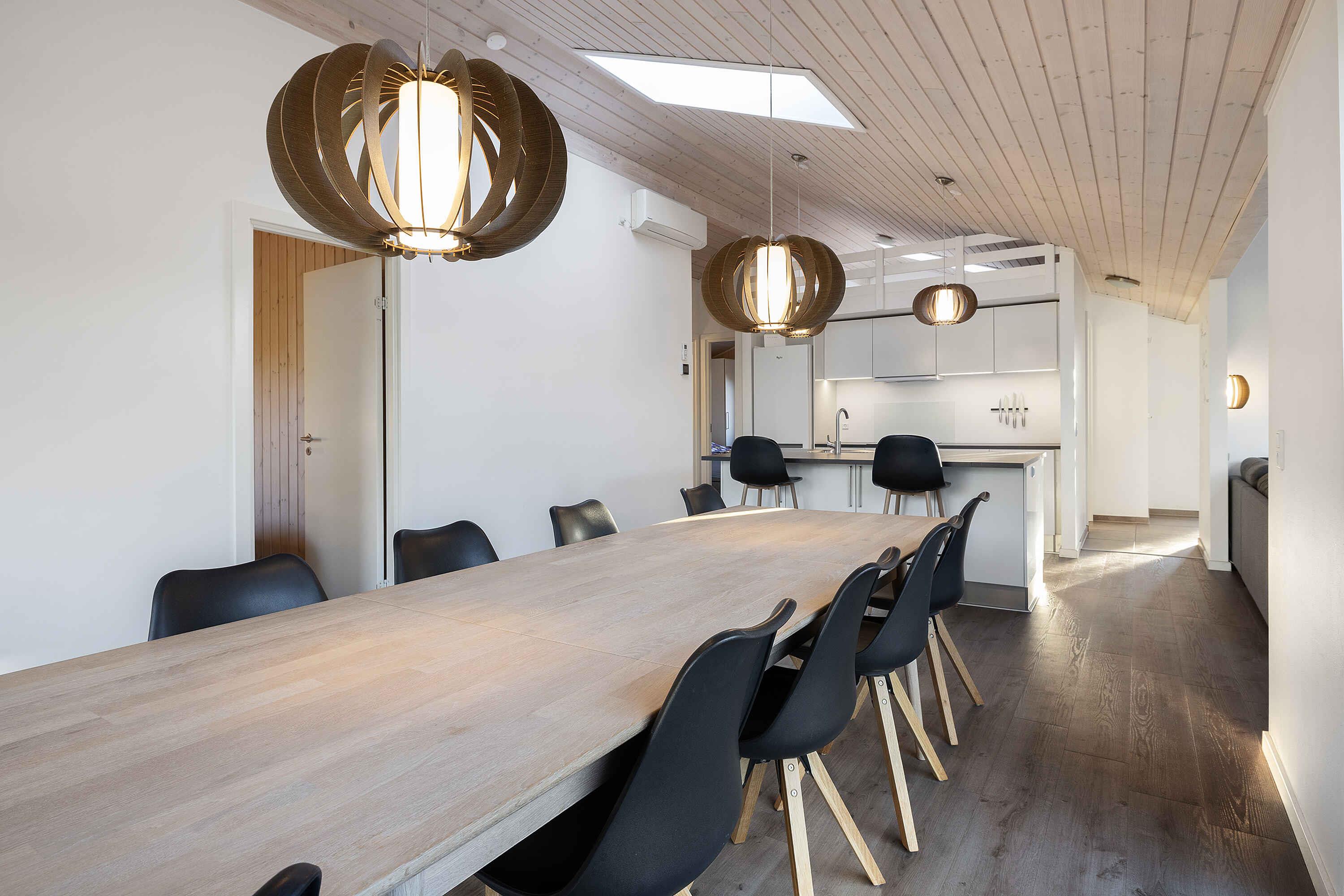 Welkom in dit moderne en charmante vakantiehuis in Fjellerup. Gelegen aan het einde van een rustige weg, biedt dit vakantiehuis een idyllisch toevluchtsoord voor je volgende vakantie. Met vier ruime slaapkamers en ruimte voor maximaal tien gasten is er voldoende ruimte voor het hele gezin of een groep vrienden. Het huis straalt licht en openheid uit dankzij de grote ramen die de schoonheid van de natuur in de woonkamer laten stromen, die zich opent naar de goed uitgeruste keuken. Vanuit de woonkamer heb je toegang tot een groot gedeeltelijk overdekt terras, waar je kunt genieten van zonnige ochtenden en gezellige avonden. De grote badkamer is een ware oase met een bubbelbad, ideaal om te ontspannen na een dag vol leuke activiteiten. Het is niet alleen het huis dat deze plek bijzonder maakt. Het gebied rond het vakantiehuis biedt talloze vakantiekwaliteiten. Je kunt een korte wandeling maken naar het prachtige strand, vissen vanaf de kust of verse vis kopen van de lokale vissersboten. Voor gezinnen is er veel te zien en te doen, van Djurs Sommerland met activiteiten voor alle leeftijden tot het Kattegatcentret in Grenå, waar je fascinerende zeedieren kunt ervaren. Natuurliefhebbers kunnen de uitgestrekte bossen verkennen met gemarkeerde paden voor wandel- of fietstochten. En kinderen zullen dol zijn op de speeltuin in Fjellerup. Dit vakantiehuis is het ideale vertrekpunt voor een onvergetelijke vakantie, of je nu op zoek bent naar rust en ontspanning of actie en avontuur. Let op: Niet te huur voor commercieel gebruik.