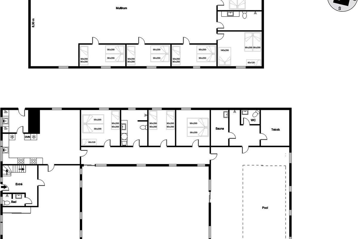 Med 10 soveværelser, tilbyder dette rummelige sommerhus, sovepladser til 30 personer.