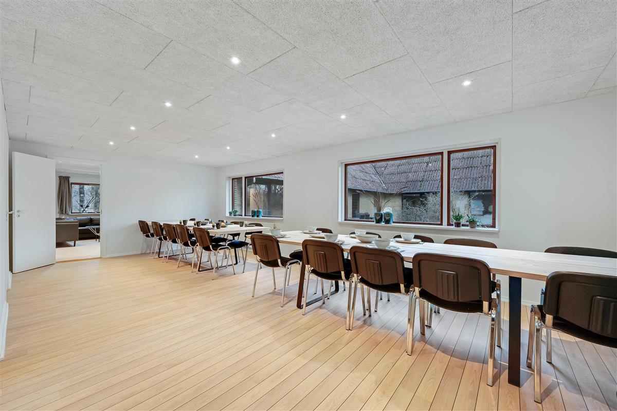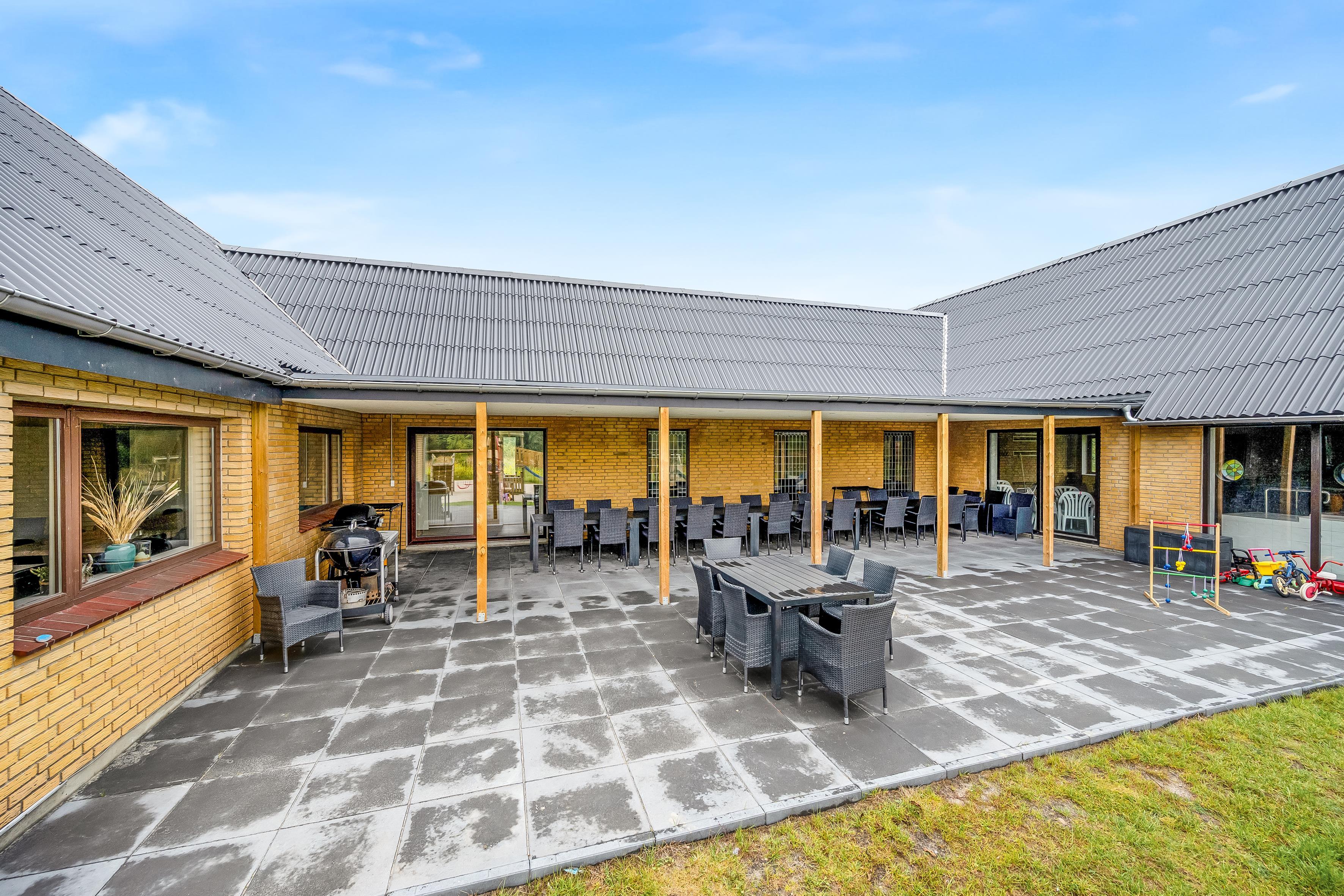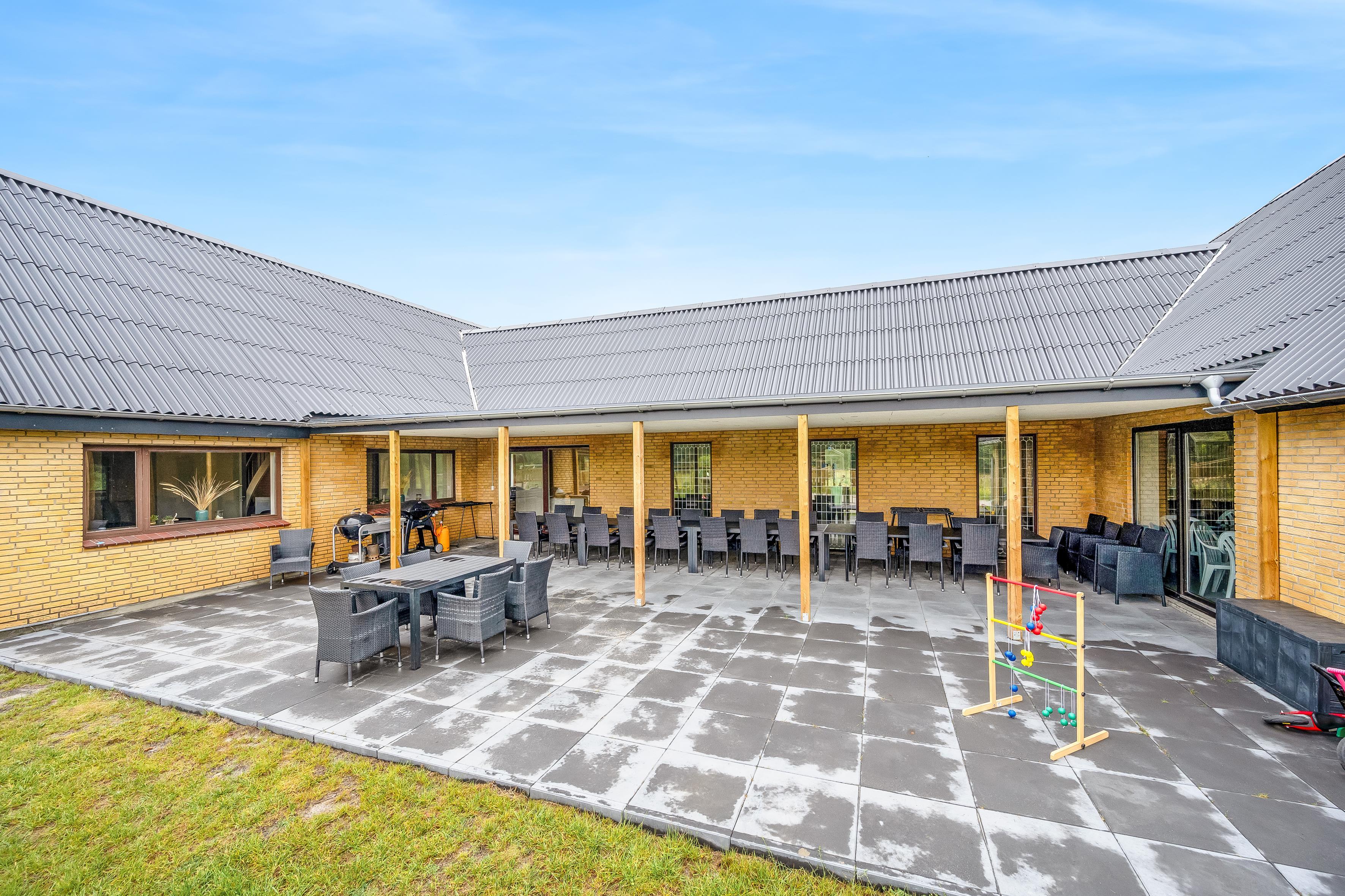 Renoveret i 2024, tilbyder denne store feriebolig plads til op til 30 personer og er det perfekte tilflugtssted for familie sammenkomster, firmaudflugter eller vennegrupper, i helt ugenerte omgivelser.