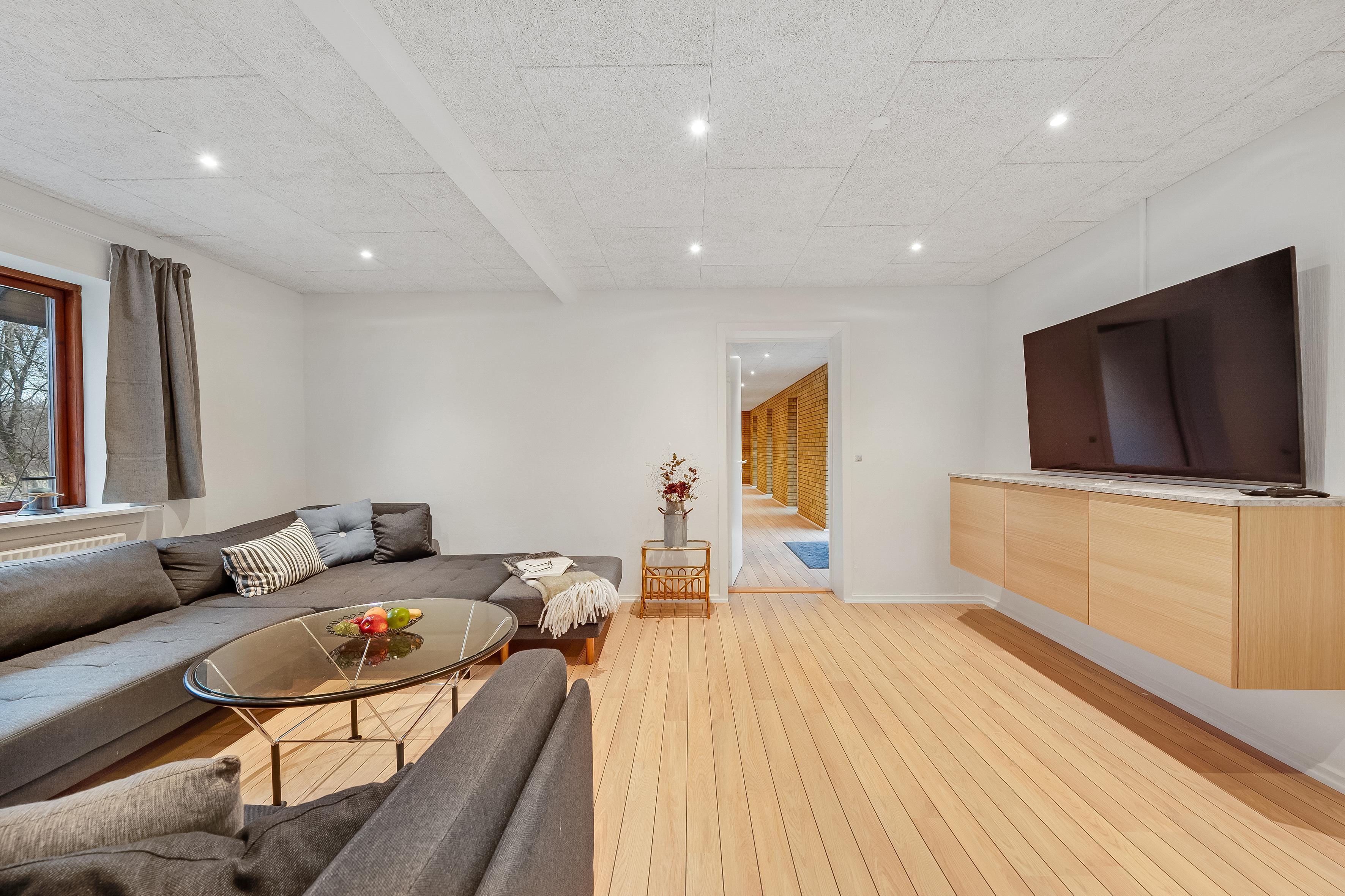 Slap af i vores hyggelige stue med tv, Chromecast, parabol og internetadgang, perfekt til film- eller spilaftener.