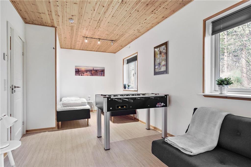 Dieses geschmackvolle Ferienhaus bietet Ihnen alles, was Sie für den gemeinsamen Urlaub zweier Familien benötigen. Hier verbringen Sie einen typisch dänischen Sommerurlaub mit Meer, Strand, einem Aktivitätsraum und einem Spielplatz im Garten. Das Haus hat ganz Jahres Isolierung und wird mittels Erdwärme beheizt und hat so mit sehr geringe Heizungsumkosten im Winter.