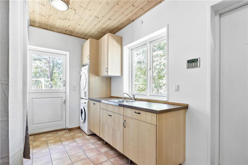 Das Haus empfängt Sie mit einem Hauswirtschaftsbereich mit einer Waschmaschine und einem Wäschetrockner, einem Eingangsbereich, einem attraktiven Badezimmer sowie einem Schlafraum mit zwei Einzelbetten, die allerdings bei Bedarf auch zusammengeschoben und als Doppeltbett verwendet werden können. Die große Küche mit einem angrenzenden, ansprechenden Essplatz samt einem Kaminofen beinhaltet einen großen Gefrierschrank, einen großen Kühlschrank und einen Geschirrspüler. Von der Küche aus gelangen Sie in das große, schlicht und modern gestaltete Wohnzimmer. Auch ein weiterer Schlafraum mit zwei zusammenschiebbaren Einzelbetten ist von der Küche aus zugänglich. In diesem Bereich des Urlaubsdomizils dürfen Sie sich zudem auf ein schönes Badezimmer und einen großen Aktivitätsraum freuen, der ein Schlafsofa, zwei Einzelbetten und Bluetooth-Lautsprecher beinhaltet. Dieser Raum wird sicherlich nicht nur Ihre Kinder und Teenager begeistern. Von der Küche aus haben Sie außerdem einen direkten Zugang zur großen Holzterrasse, die mit einer elektrischen Markise ausgestattet ist. Während Sie es sich in aller Ruhe auf der Terrasse gemütlich machen, sich entspannnen und köstliche Mahlzeiten vom Grill genießen, werden Ihre Kinder vergnügt auf dem schönen "Spielplatz" vor dem Haus umhertollen.