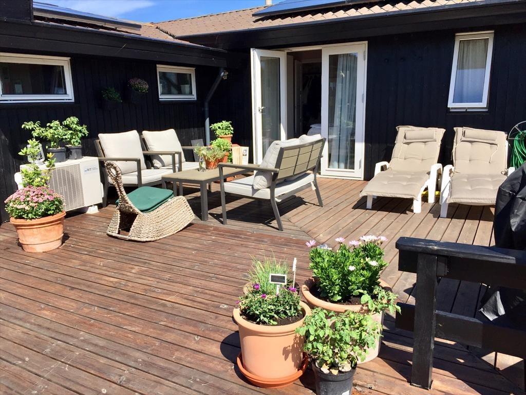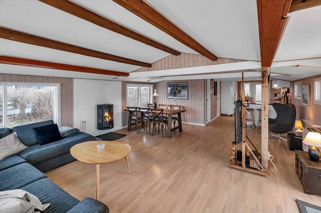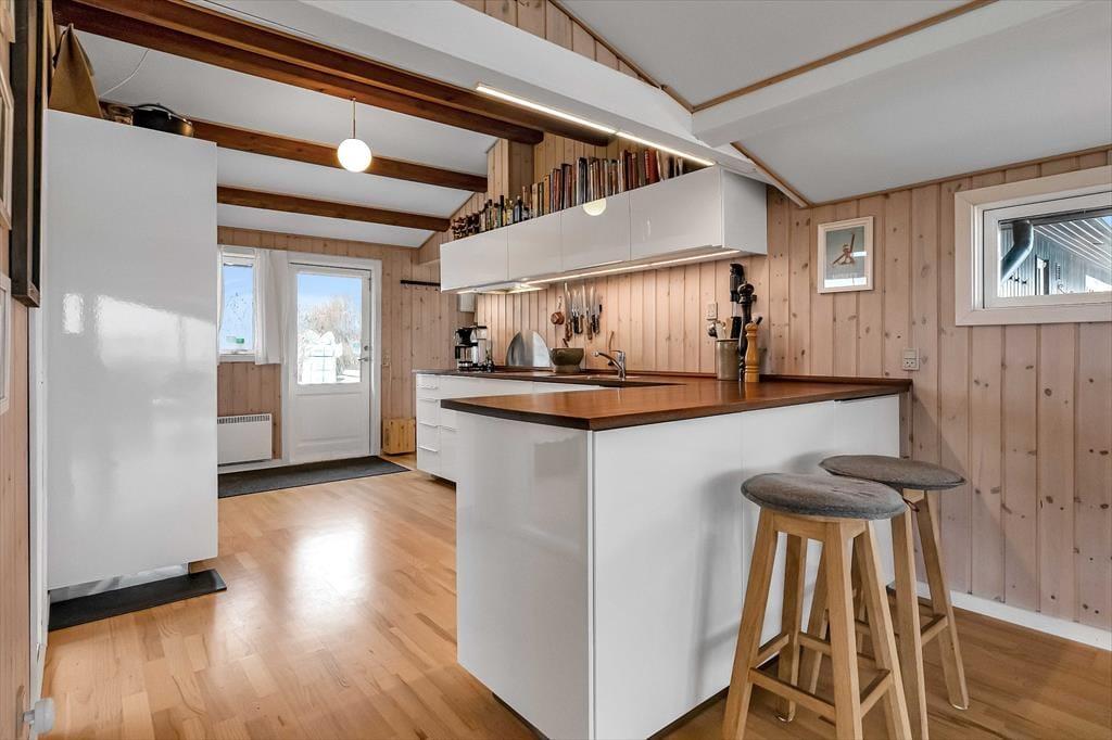 Dein Ferienhaus begrüßt dich mit einer ganz besonderen, überaus gemütlichen Atmosphäre. Alles wirkt angenehm hell und einladend, sodass du vom ersten Moment an spürst, wie die Last des Alltags von deinen Schultern abfällt und sich beste Urlaubsstimmung in dir ausbreitet. In der großen, schönen Küche, die offen in den Wohnraum integriert ist, wird die Zubereitung der täglichen Mahlzeiten zum vergnügten Familienprojekt. Der Rest der Wohnfläche ist einem ansprechenden Badezimmer mit Dusche, einem Gäste-WC und drei guten Schlafräumen überlassen. Nach langen, erlebnisreichen Tagen in der Natur und am Meer, wirst du mit deinen Lieben im Wohnraum garantiert viele entspannte Stunden mit einem schönen Film, Gesellschaftsspielen und einem guten Glas Wein des nahegelegenen Weingutes Ørnberg genießen.