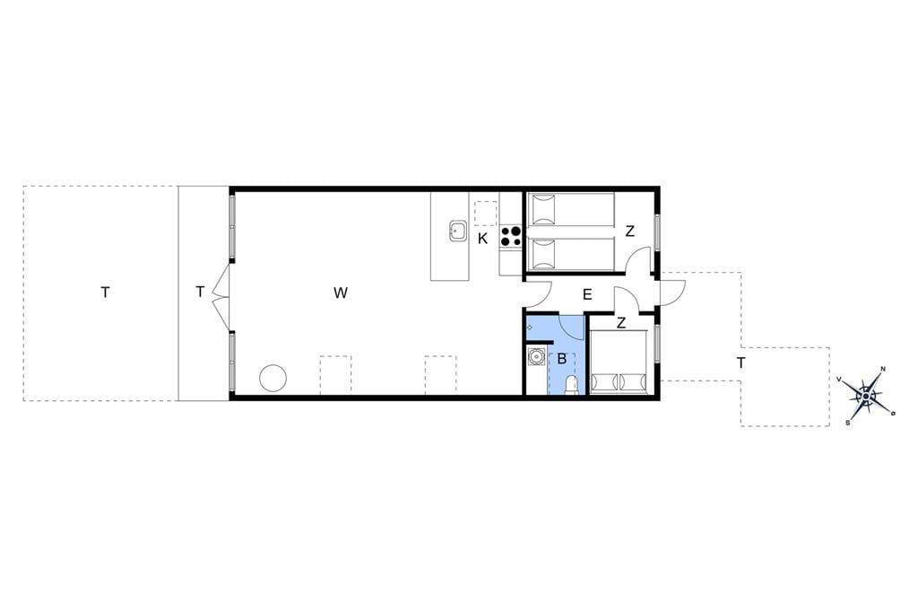 Die Wohnfläche des Urlaubsdomizils beinhaltet eine schöne offene Küche, die Ihnen soviel Bewegungsfreiheit bietet, dass Sie problemlos mit mehreren Personen zusammen die Mahlzeiten zubereiten können. Hinzu gesellt sich ein gutes Badezimmer mit einer Dusche. Die Schlafplätze verteilen sich auf einen Schlafraum mit einem Einzelbett und einen Schlafraum mit zwei Einzelbetten. Beide Zimmer sind mit ausreichend Schrankfläche versehen. Vom gemütlichen Wohnzimmer, das sich aus einem Ess- und einem Wohnbereich zusammensetzt und über ein Doppelbett verfügt, gelangen Sie direkt hinaus auf die schöne Terrasse, auf der Sie sich den gesamten Tag hindurch von der Sonne verwöhnen lassen und ein spannendes Buch lesen können.