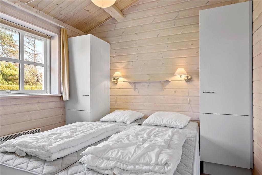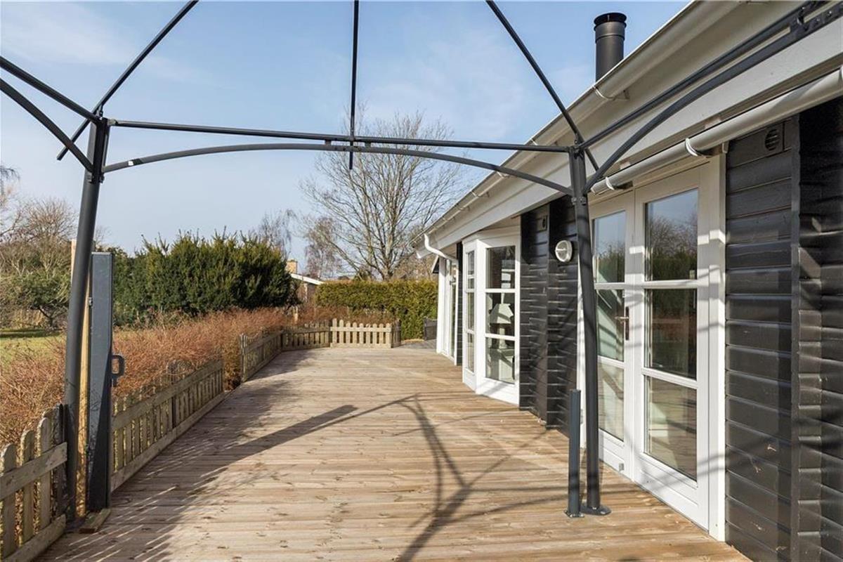 Helles und tolles Ferienhaus, hier fühlen Sie sich sofort zu Hause. Schönes Wohnzimmer mit Holzofen, und von hier gelangt man auf die überdeckte Terrasse. Gemütliche Küche mit gutem Arbeitsplatz. Von der Küche ab haben Sie Zugang zu der offenen Sektion der Terrasse. 3 gute Schlafzimmer mit gutem Schrankplatz. Wohl eingerichtetes Badezimmer mit Dusche, und ein Nebengebäude mit 2 Schlafplätzen. Auf der großen Terrasse gibt es eine Menge von gemütlichen Ecken wo man immer Windschutz und einen Platz in der Sonne finden kann.