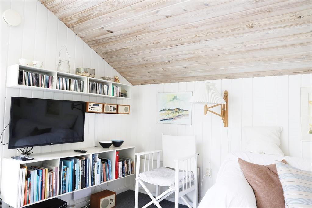 Schönes Wohnzimmer mit Holzofen. Entspannen Sie sich bei einem guten Buch oder einer Partie Karten. Es gibt auch einen gemütlichen Essbereich. Es gibt einen Fernseher mit dänischen und deutschen Kanälen und ein WLAN-Netzwerk. Es gibt drei gute Schlafzimmer und eine schöne Küche, in der Sie bei der Zubereitung des Mittagessens helfen können. Das Badezimmer verfügt sowohl über eine Dusche als auch über eine Waschmaschine.