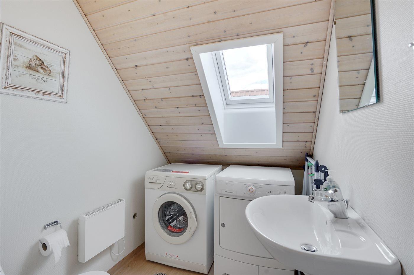 Er is 1 badkamer met douchehok en 2 toiletten. Er is vloerverwarming in 1 badkamer. De sauna biedt de gelegenheid tot ontspanning.