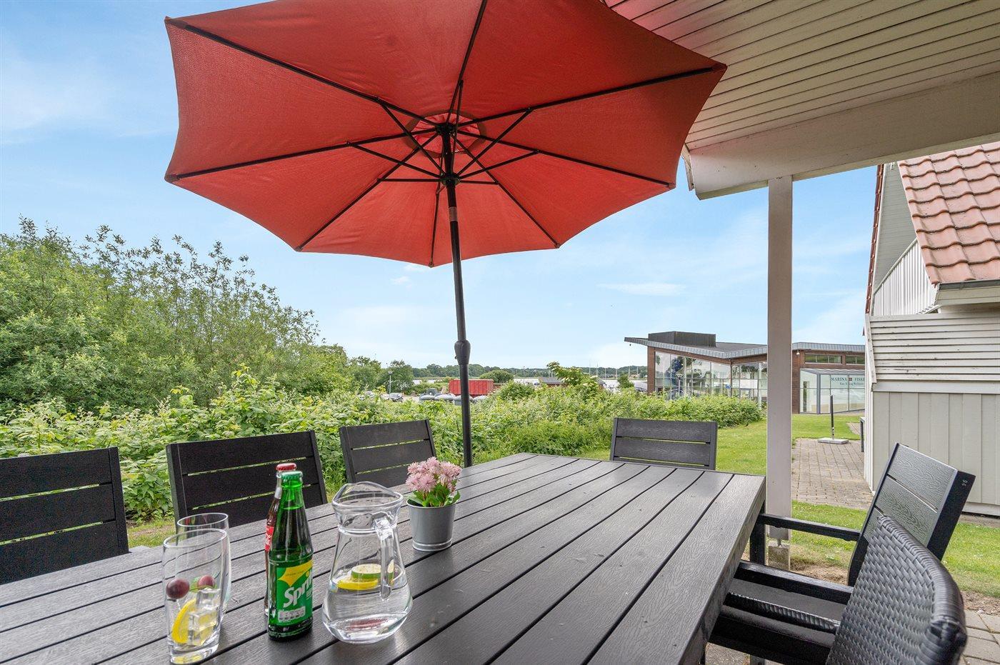 De vakantiewoning is gelegen op een 300 m² groot natuural grond. Afstand tot de fjord 100 m. Dichtstbijzijnde winkel 600 m. Bij de vakantiewoning hoort 30 m² terras. Daarnaast is er een 30 m² groot overdekt terras. Balkon. Barbecue. Parkeerplaats bij het huis.