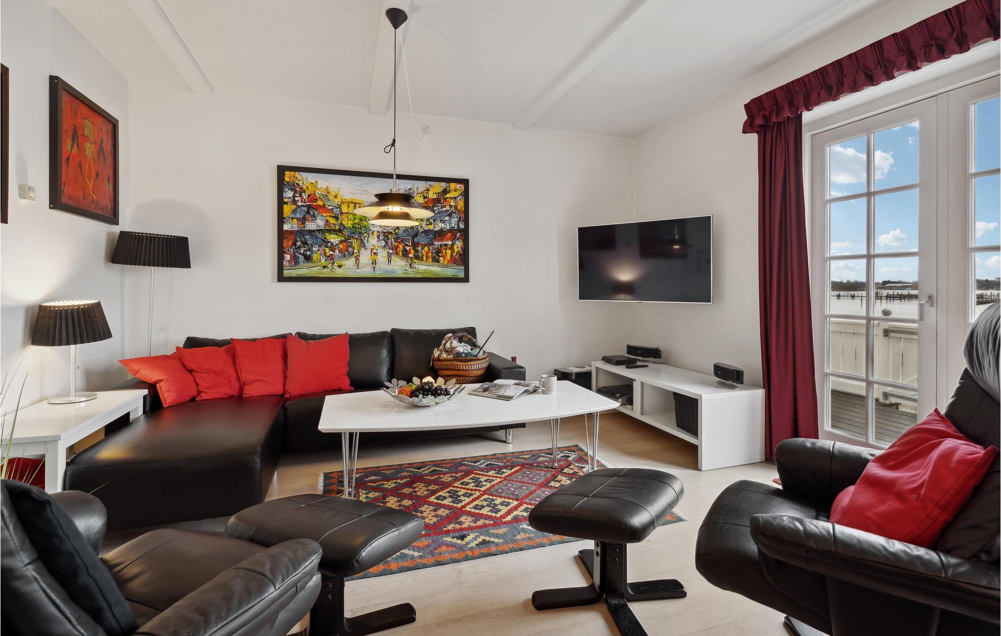 Deze flat ligt op de begane grond van een interessant gebouw bij de haven van Gråsten. Een badzone maakt daarom deel uit van de flat. Vanuit de flat heeft u een prachtig uitzicht op het fjord en de kleine baai met een badstrand. De flat is mooi ingericht, de keuken is goed uitgerust en functioneel. U kunt te voet naar de stad en het kasteel Gråsten, en Sønderborg en Flensburg met vele winkels, restaurants en gezellige havensfeer liggen op korte rijafstand. De flat heeft een jacuzzi, sauna en houtkachel voor gezelligheid en verwarming. Een mooie uitvalsbasis voor een goede vakantie.
