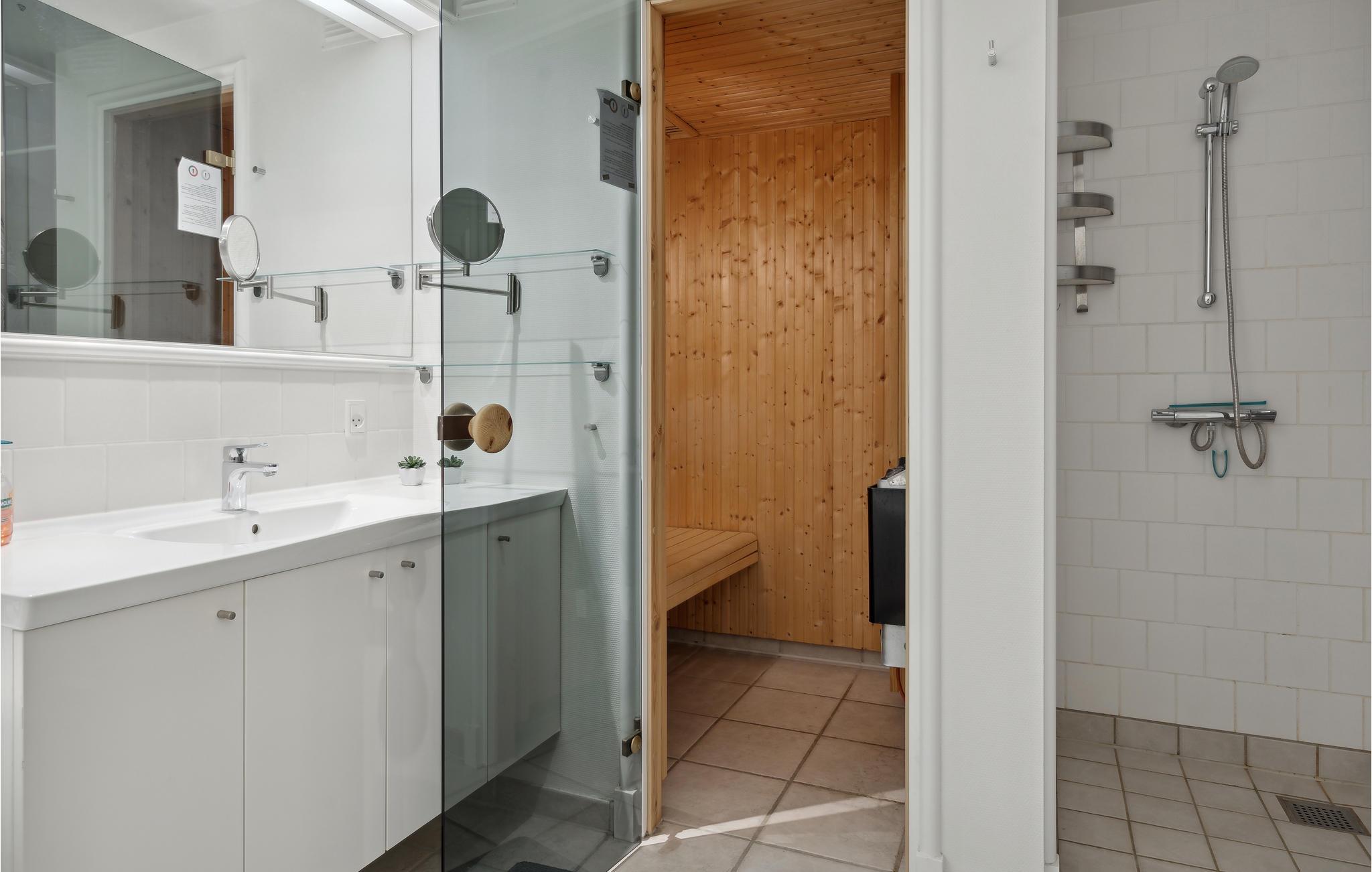 De goed uitgeruste keuken is verbonden met het eetgedeelte en de woonkamer. Vanuit de woonkamer heeft u toegang tot het balkon, waar u kunt genieten van het prachtige uitzicht over het water. Op koele dagen kunt u genieten van de warmte van de open haard. In de grootste badkamer bevindt zich een whirlpool en een sauna. De flat heeft twee grote balkons op het oosten en westen, zodat u van 's ochtends tot 's avonds van de zon kunt genieten. U kunt ook barbecueën op het terras, maar alleen met een gasbarbecue, zorg zelf voor gas. Dit is een ideaal uitgangspunt voor een leuke vakantie.
