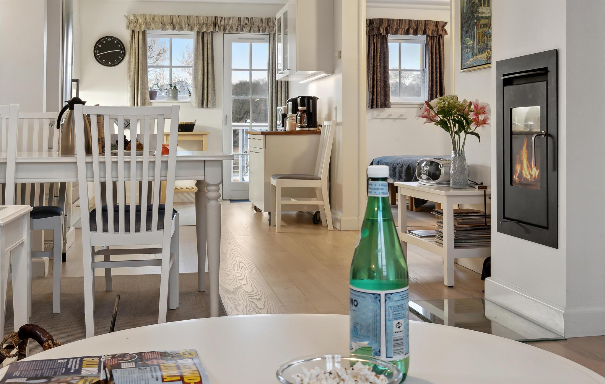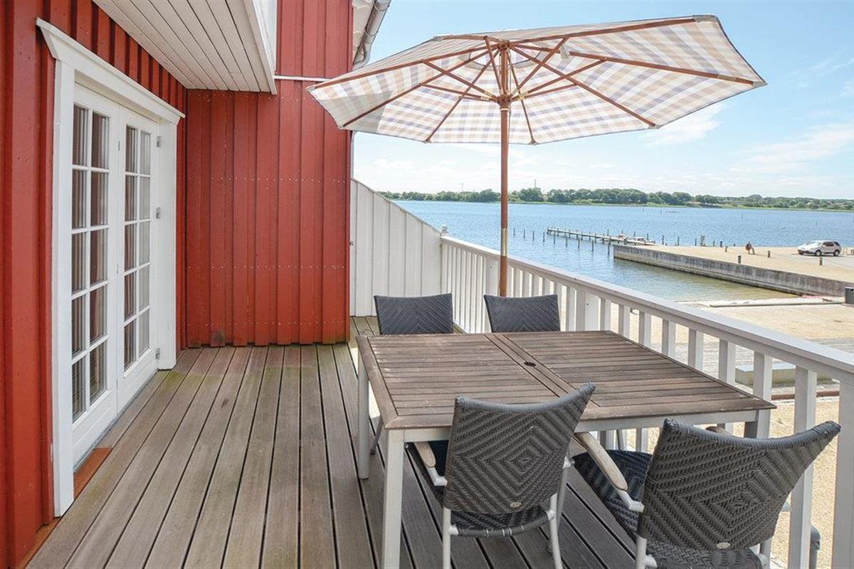 Geniet van een modern vakantieappartement met panoramisch uitzicht aan de haven van Gråsten, inclusief sauna en whirlpool.