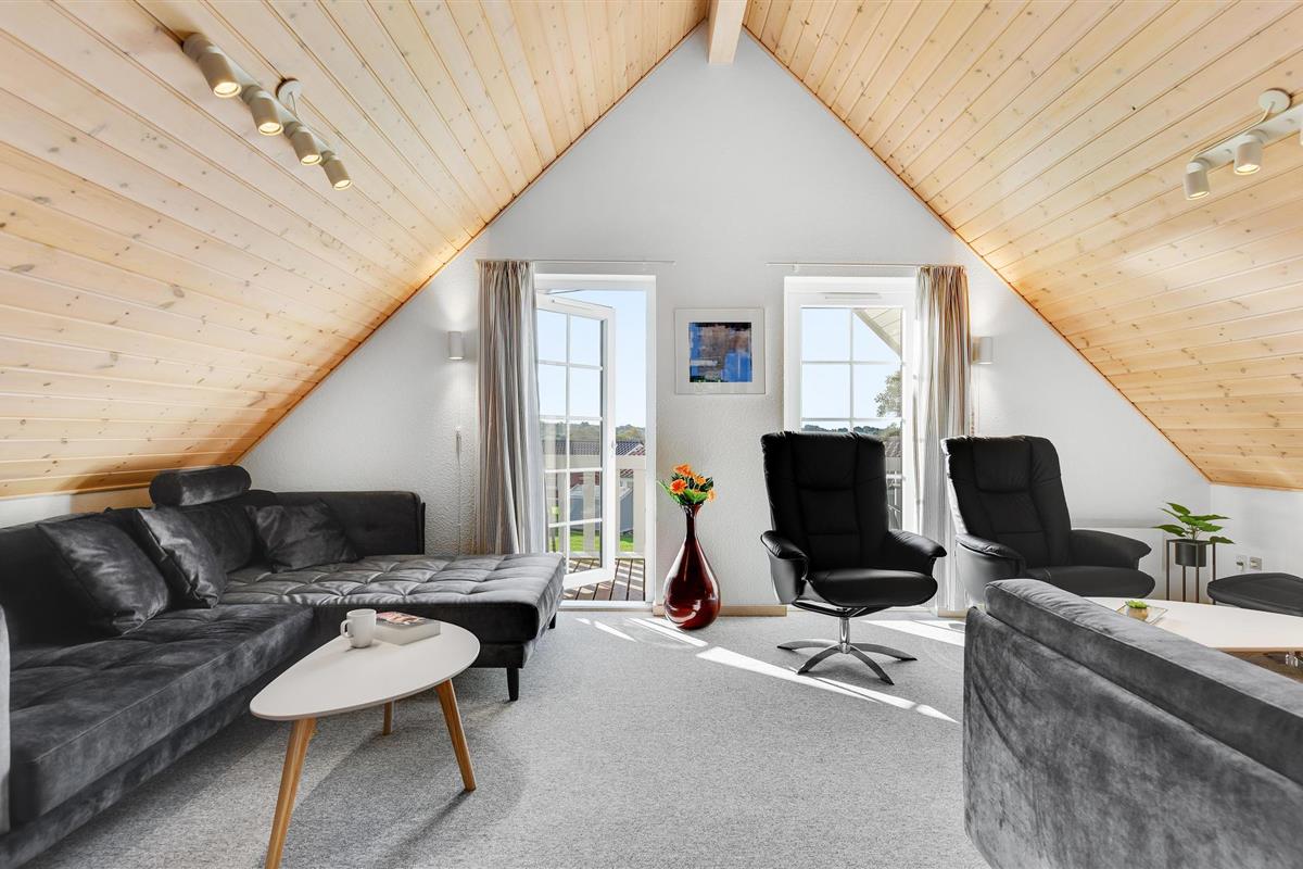 Ruim vakantiehuis met zeezicht, sauna, whirlpool en balkon in Marina Fiskenæs Feriepark, perfect voor ontspanning.