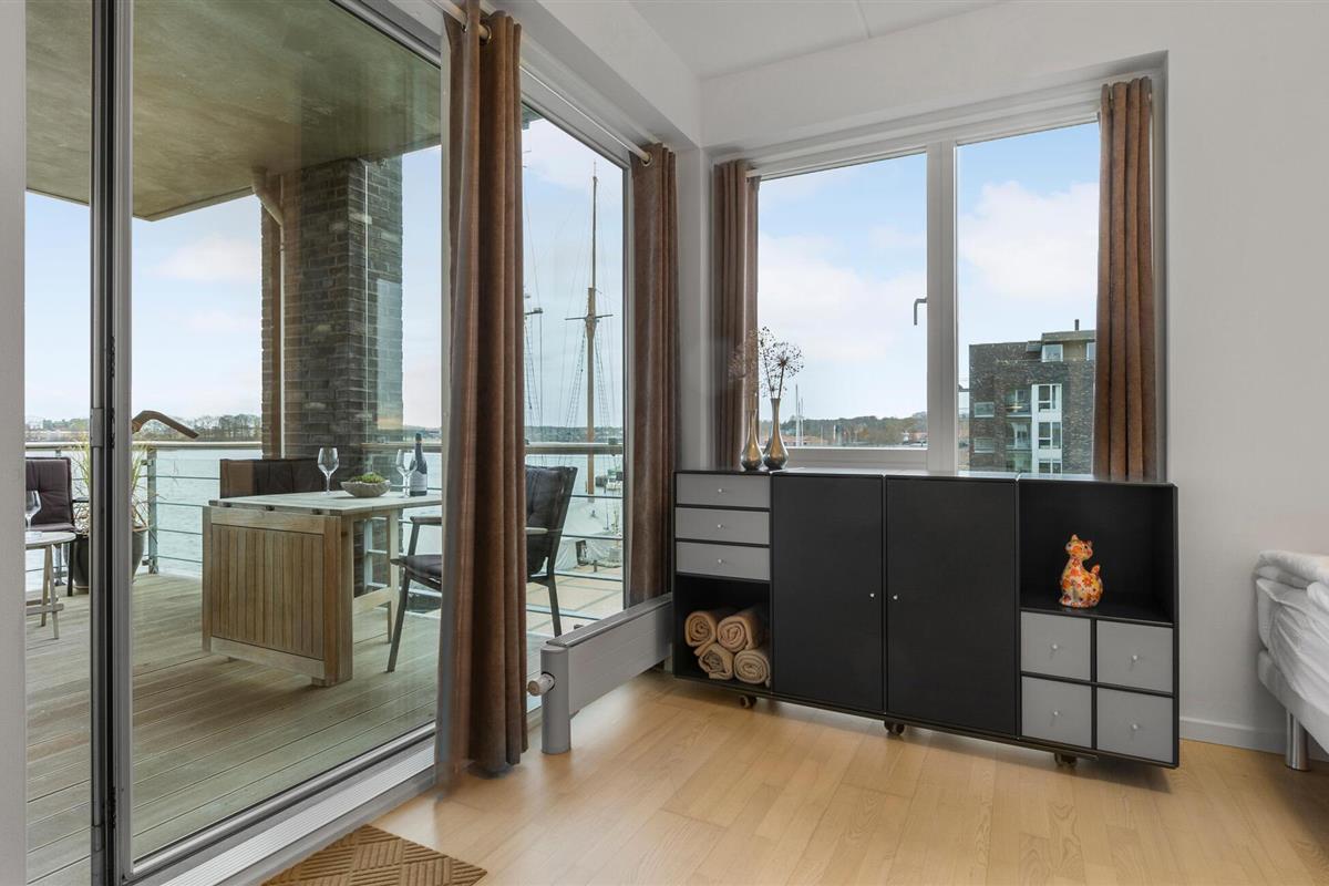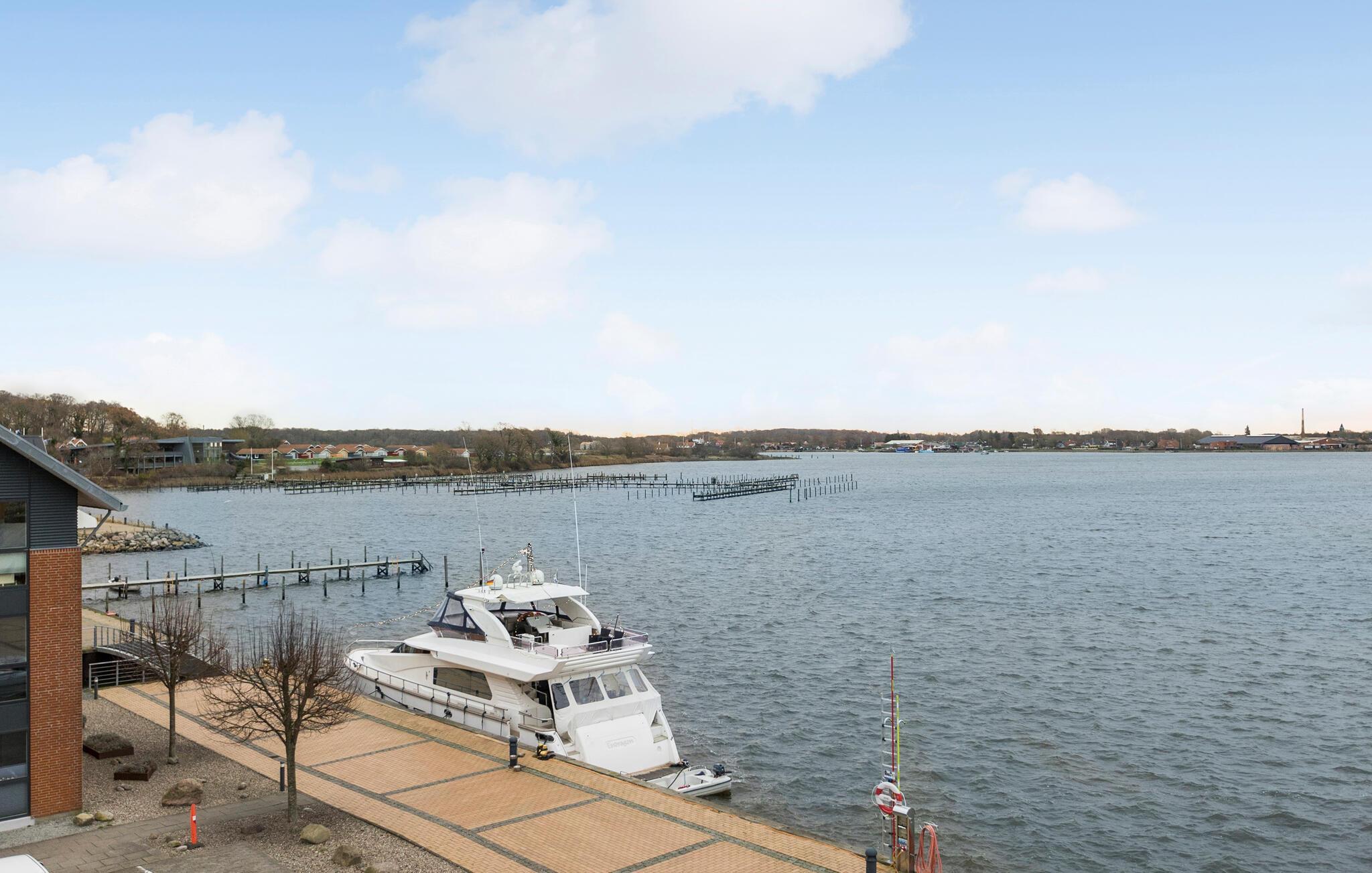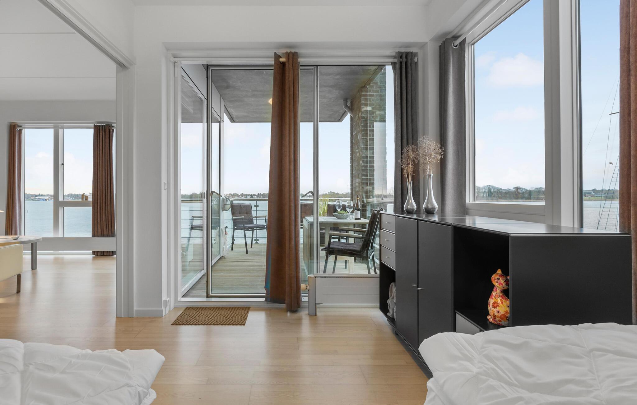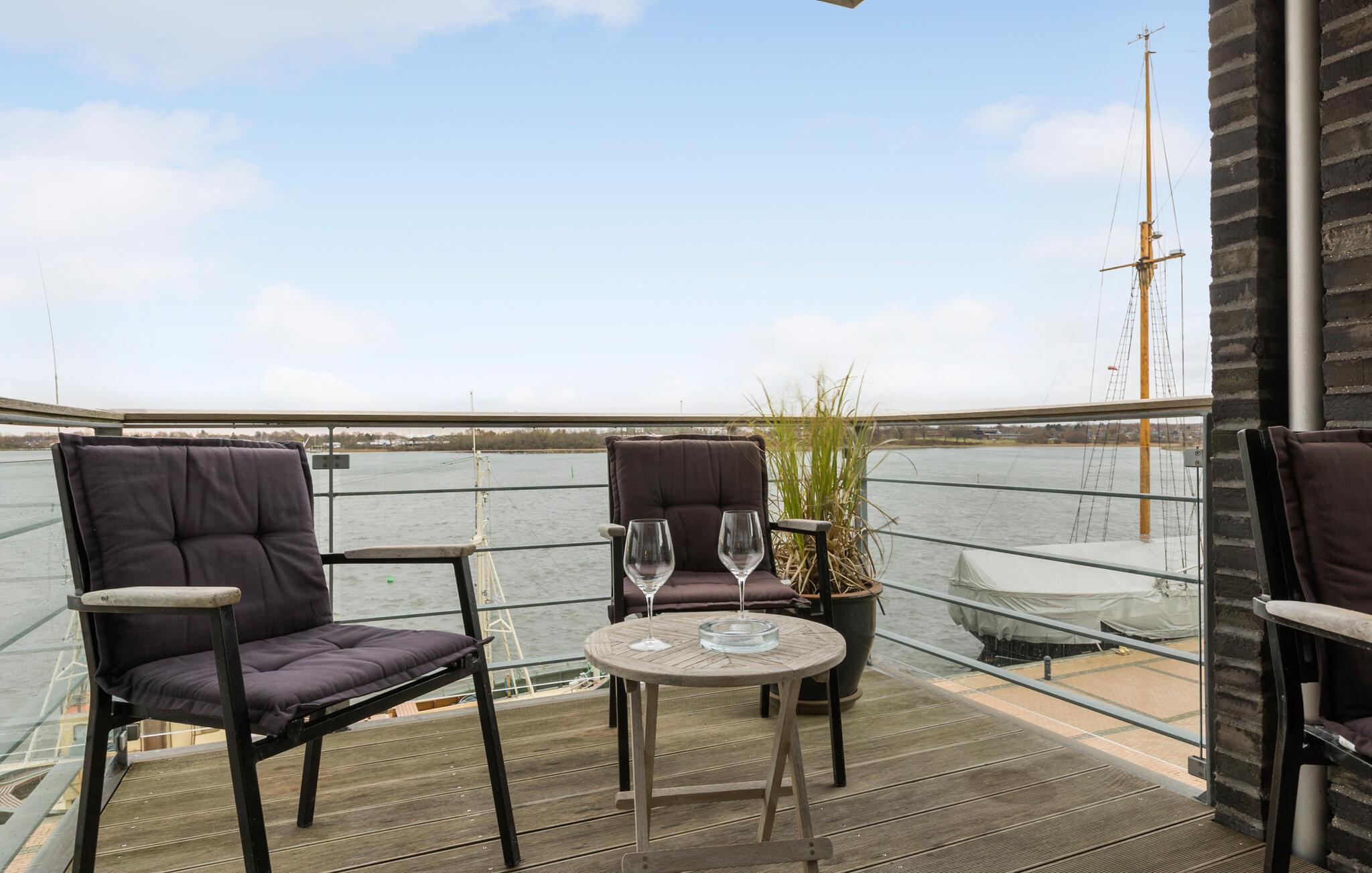Moderne vakantiewoning aan de haven van Gråsten met panoramisch uitzicht en privébalkon.