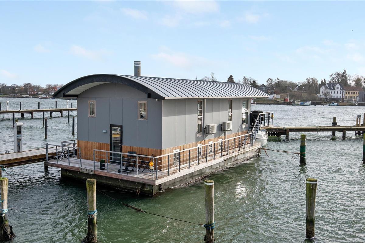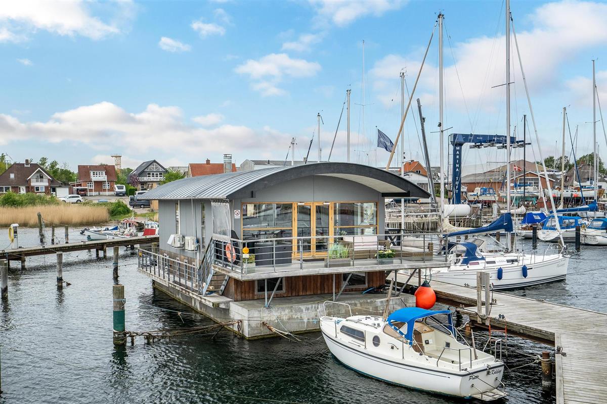 Ervaar luxe en rust op deze ruime woonboot in de jachthaven van Gråsten, direct aan de Oostzee met prachtig terras en moderne voorzieningen.