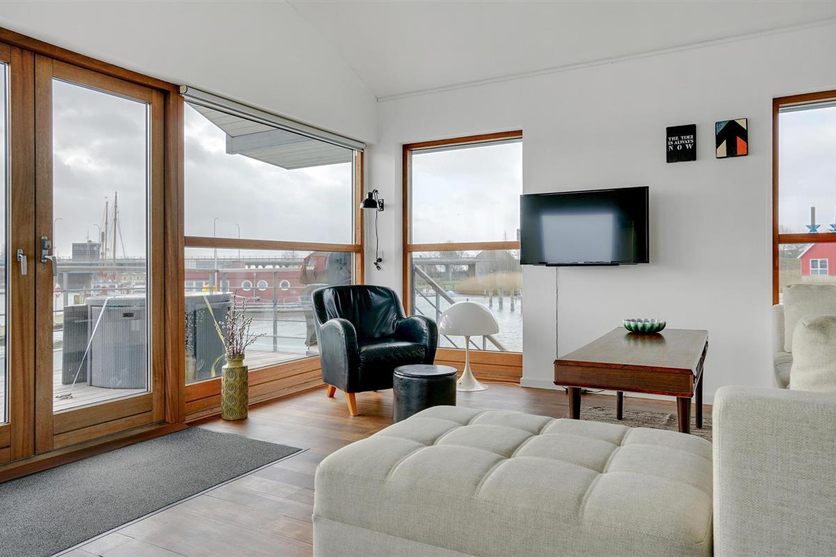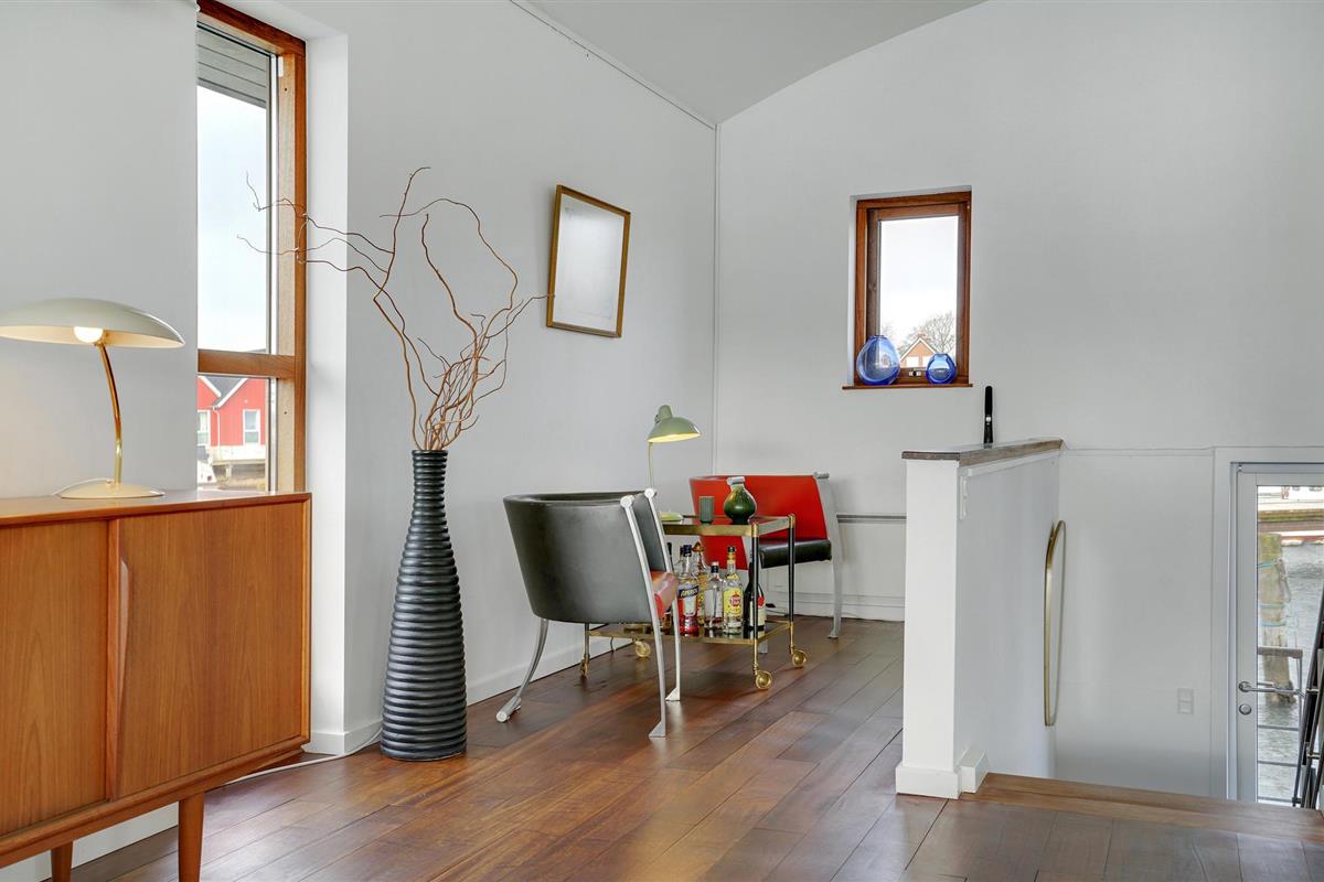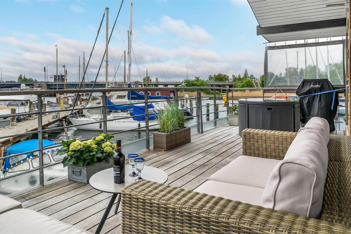 Op de bovenste verdieping bevindt zich de goed uitgeruste keuken, die in open verbinding staat met het eetgedeelte en het woongedeelte. Van hieruit heeft u toegang tot een prachtig terras. De onderste verdieping biedt nog een woonruimte en twee slaapkamers en een badkamer. De woonboot heeft verschillende mooie terrassen, zodat u altijd een plek kunt vinden waar beschutting is.