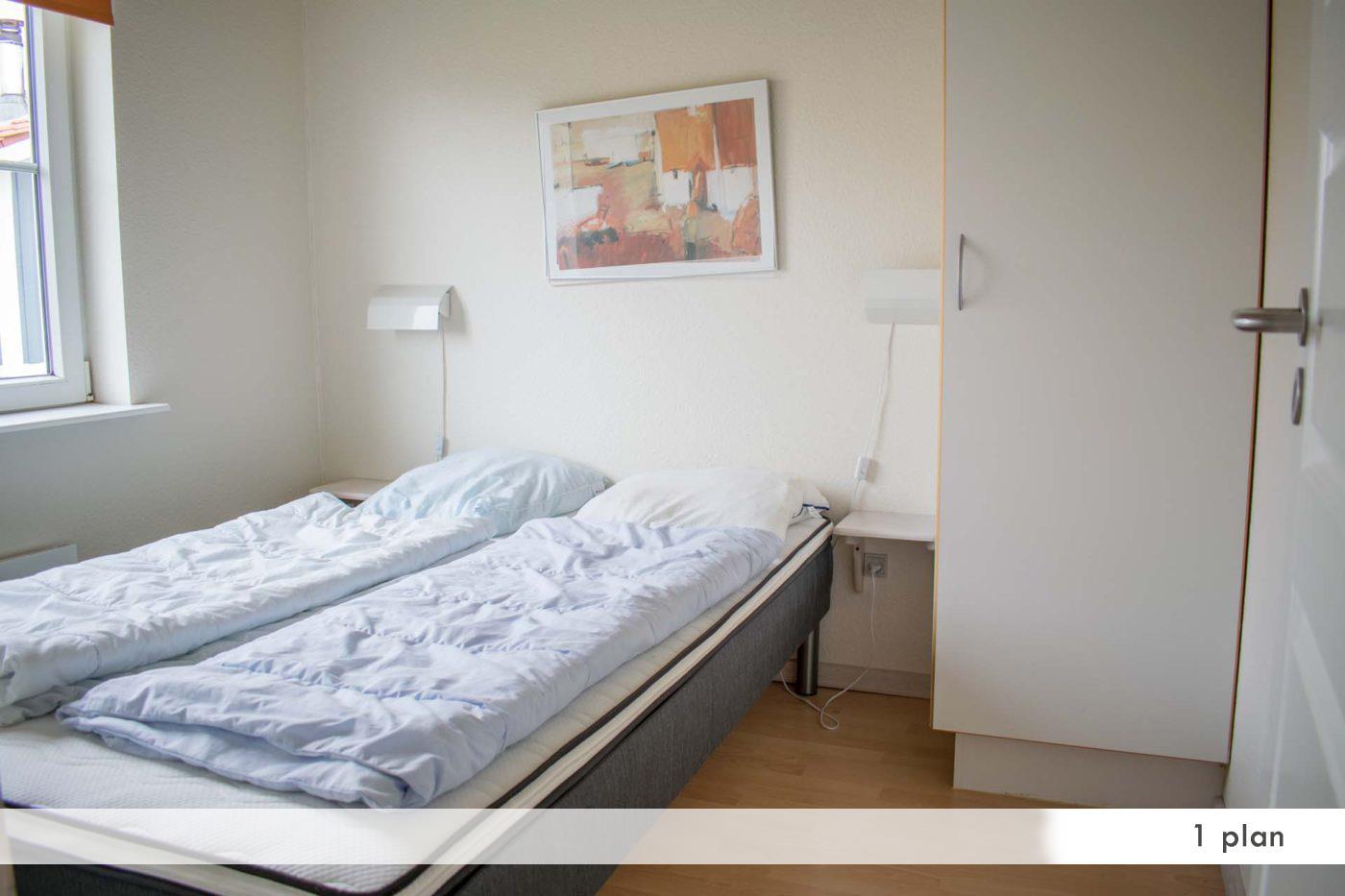 1 bed rooms, with one double bed. Toilet. Electric heating and modern furniture.