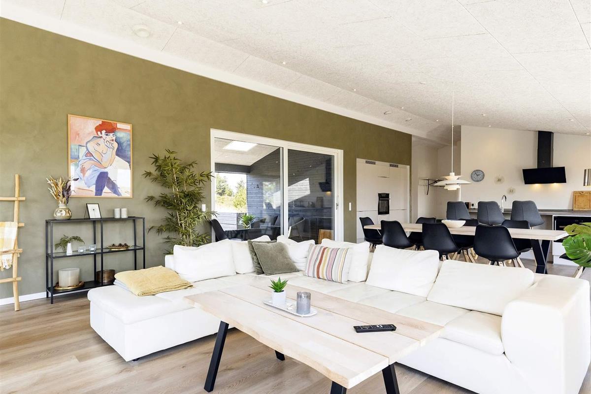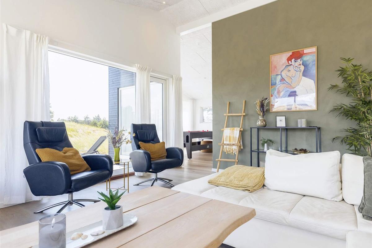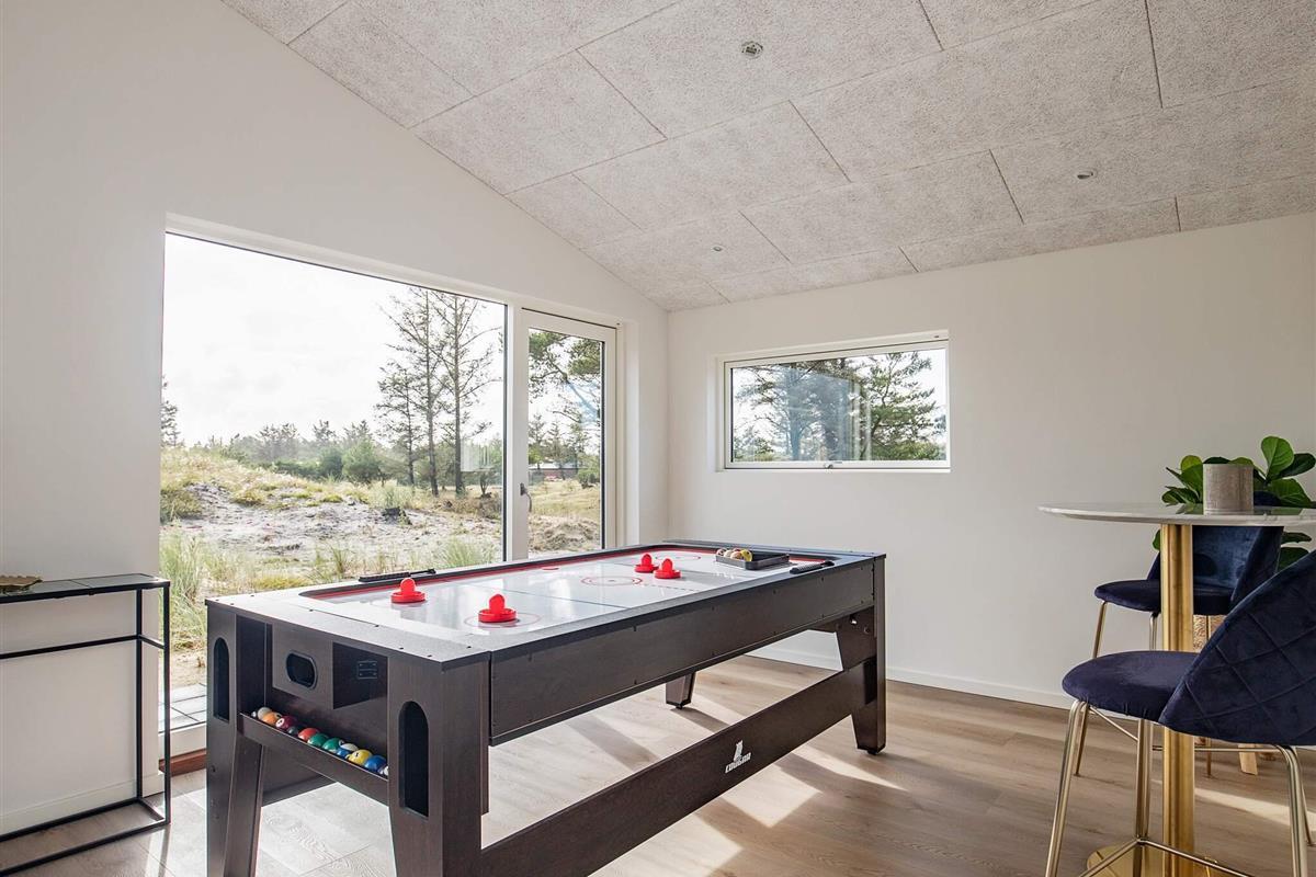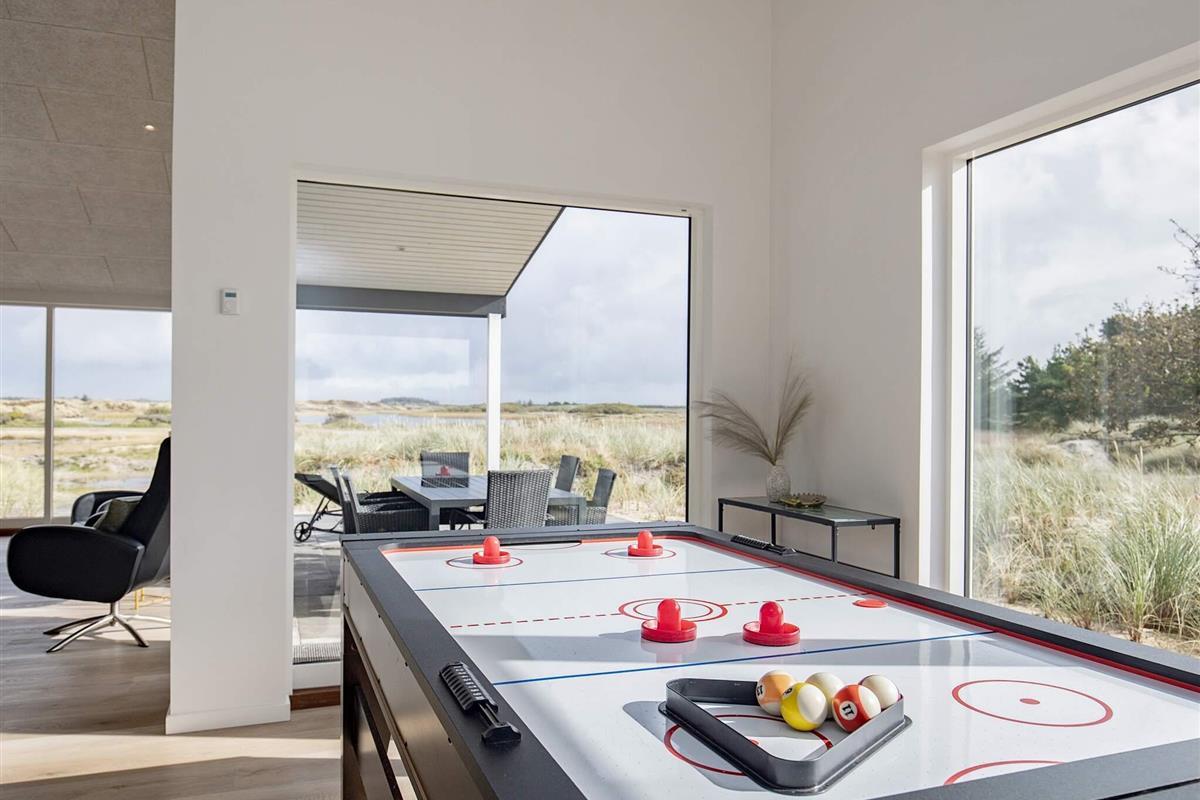 Dieses moderne Ferienhaus wurde 2021 auf einem großzügigen, offenen Naturgrundstück mit fantastischem Blick auf die Dünenlandschaft von Grærup erbaut und bietet einen luxuriösen und erholsamen Aufenthalt für Familien oder Freundesgruppen. Das Anwesen verfügt über einen Whirlpool, eine kleine Sauna und einen Aktivitätsraum mit Billardtisch – ideal für Unterhaltung und Spaß im Urlaub.