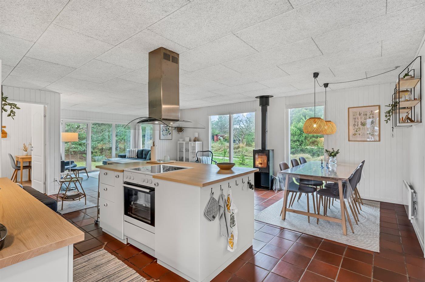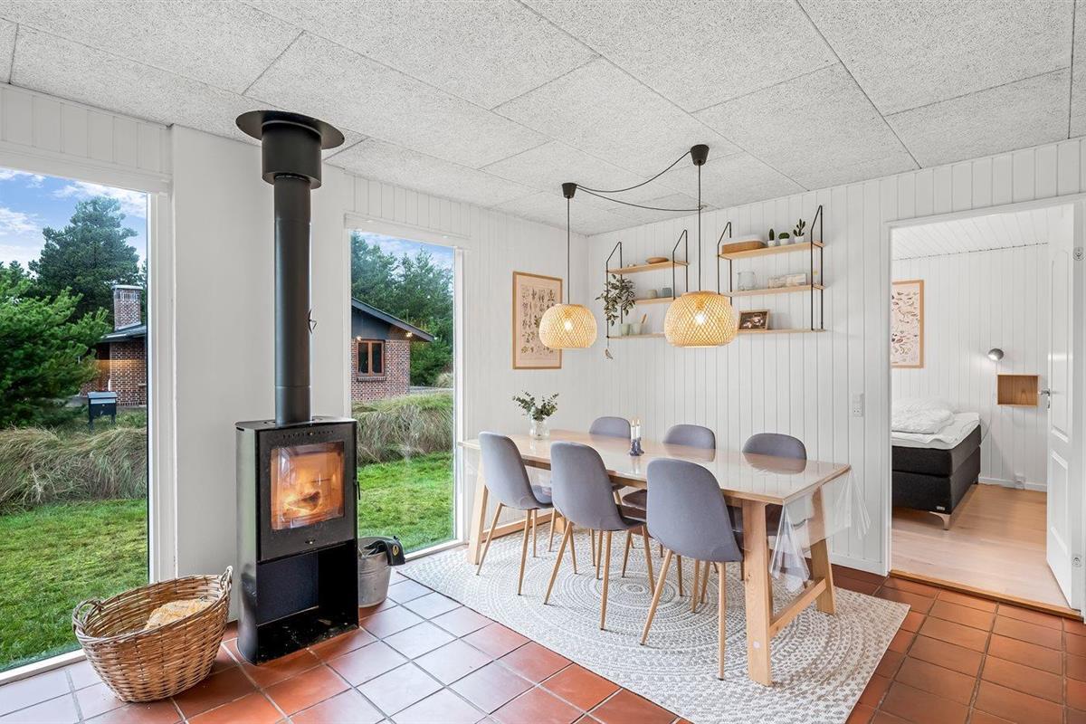 Volledig gerenoveerd vakantiehuis in Oksbøl, 600 m van zee, met luxe voorzieningen en ruimte voor huisdieren.