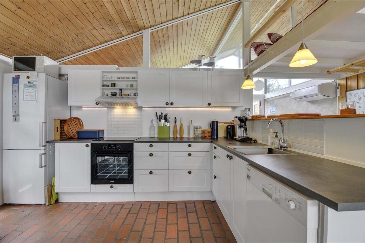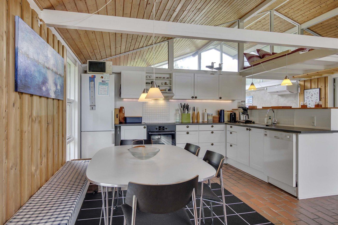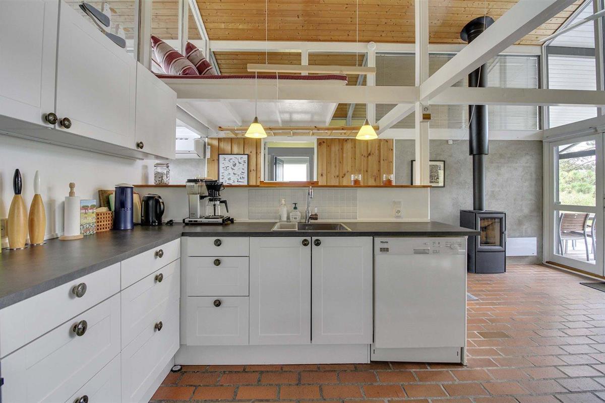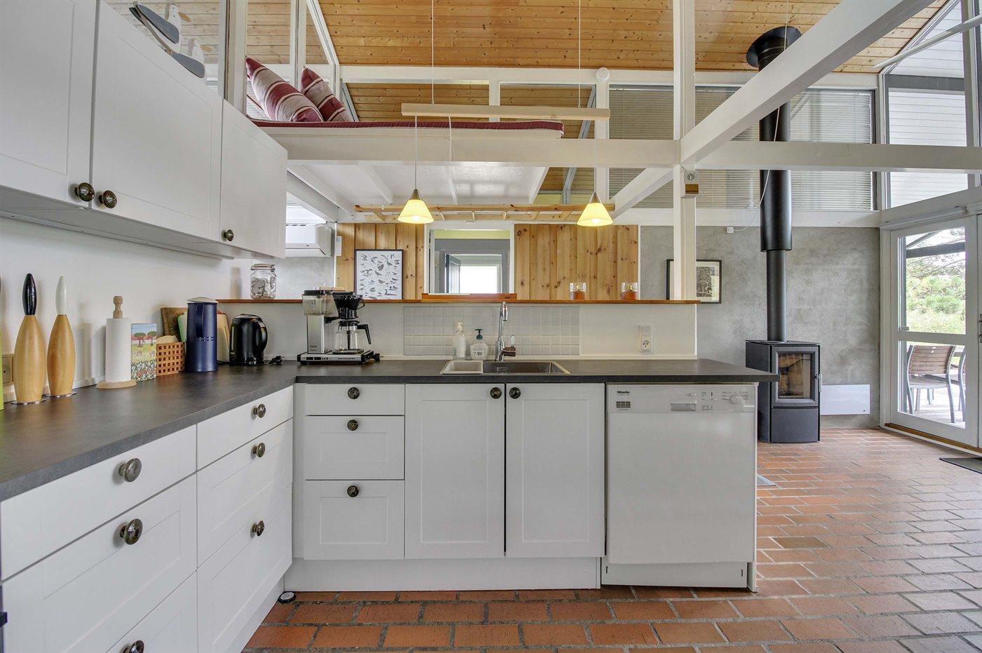 De keuken is uitgerust met koelkast Er is 4 inductiekookplaten, heteluchtoven, magnetron en vaatwasser.