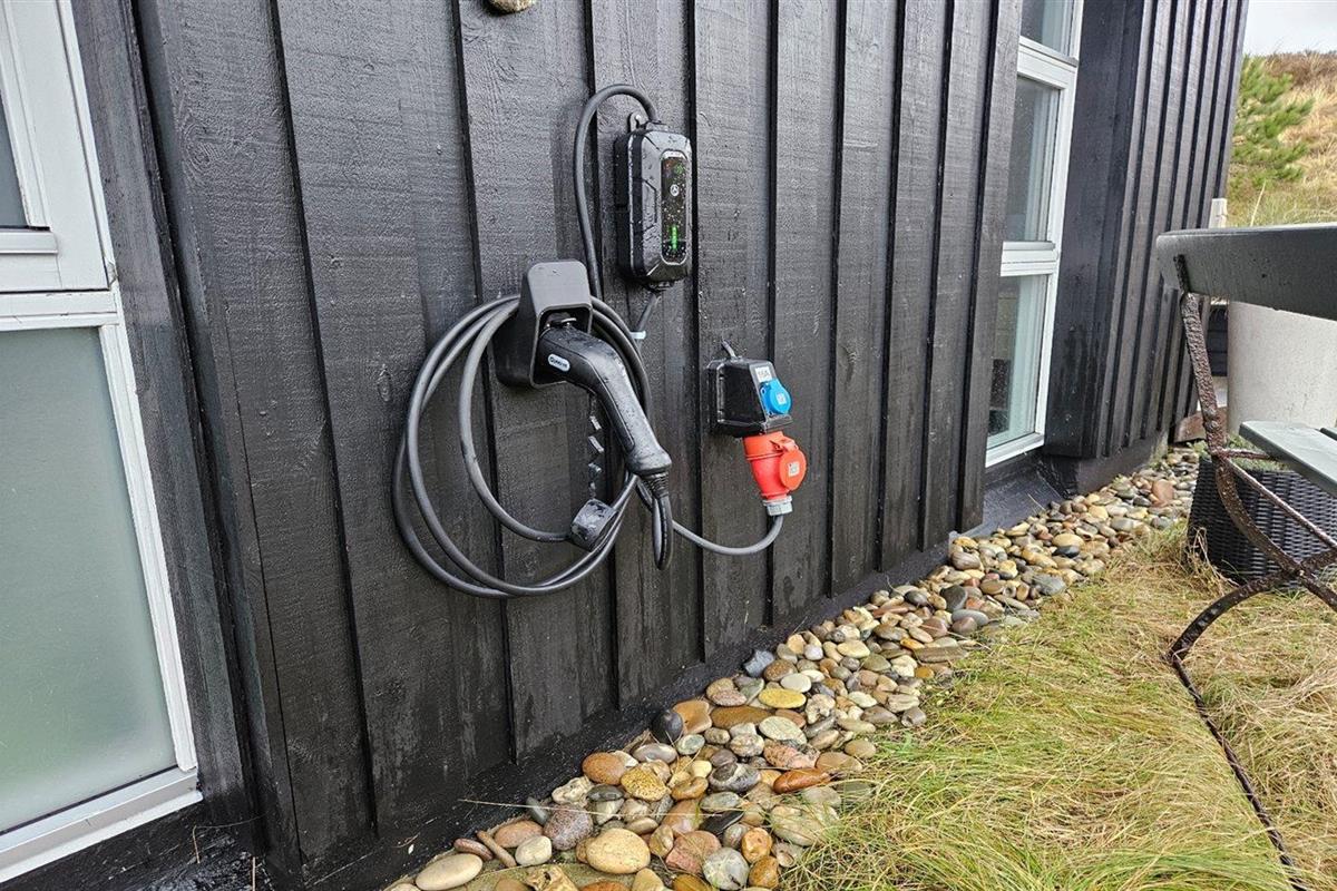 De vakantiewoning is gelegen op een 5800 m² groot natuural grond. Afstand tot de zee 600 m. Dichtstbijzijnde winkel 6000 m. Bij de vakantiewoning hoort 47 m² terras. Daarnaast is er een 20 m² groot overdekt terras. Gereedschapsruimte. Het huis heeft een stopcontact voor het opladen van een elektrische auto. Oplaadstekker type 2. Met 12 kW-laadvermogen. Parkeerplaats bij het huis.