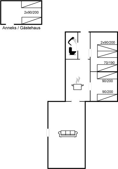 Er zijn in totaal 2 slaapkamers. De slaapplaatsen zijn als volgt verdeeld: 2 slaapplaatsen in tweepersoonsbed. 5 slaapplaatsen in eenpersoonsbedden. 2 van deze slaapplaatsen bevinden zich in de bijgebouw.