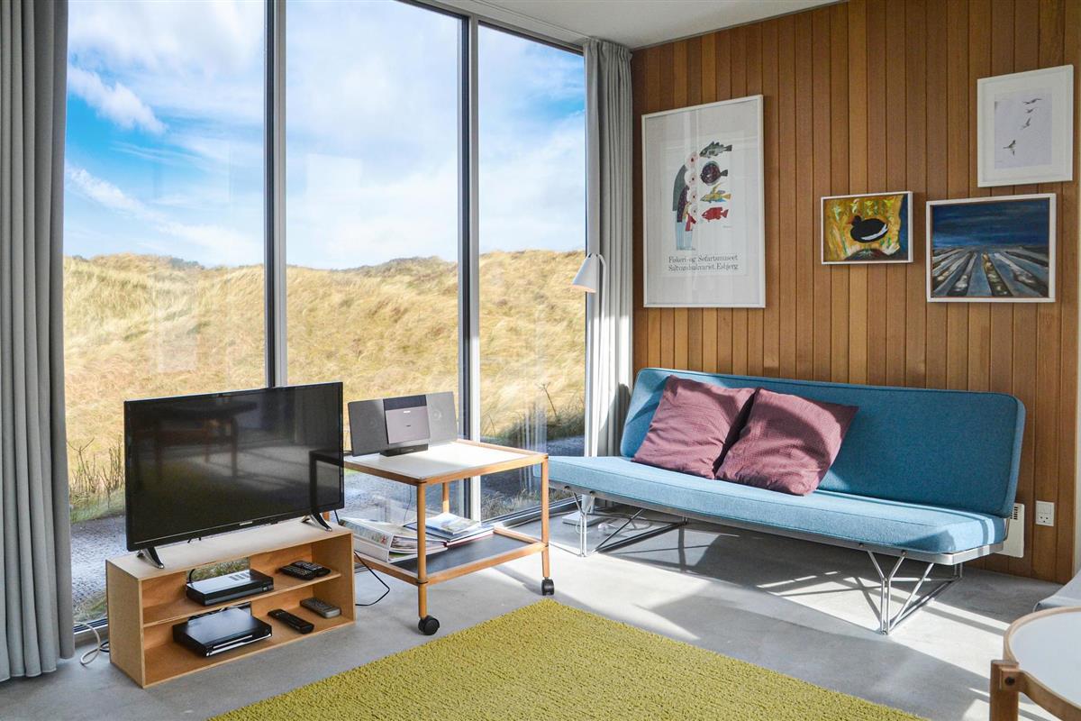 Dit goed ingerichte vakantiehuis is ontworpen door een architect en ligt op de top van een duinperceel met panoramisch uitzicht over de duinen. Het huis is omgeven door verschillende heerlijke, ongestoorde terrassen en biedt een ruime zonnetuin. Vanaf hier loopt u niet ver naar het strand en de fascinerende Noordzee. Grærup is een klein vakantieoord tussen Vejers en Henne, een gebied dat gekenmerkt wordt door wilde natuur en uitnodigt tot wandelingen. Enthousiaste vissers kunnen zich verheugen op het vismeer van Grærup (put en take). Er zijn hier verschillende avonturenbaden, bowlingbanen en minigolfbanen, en maak ook een uitstapje naar Esbjerg, ongeveer 35 km ten zuiden van Grærup. In Esbjerg vindt u winkels, culturele evenementen en festivals, musea, kunst en unieke natuur.