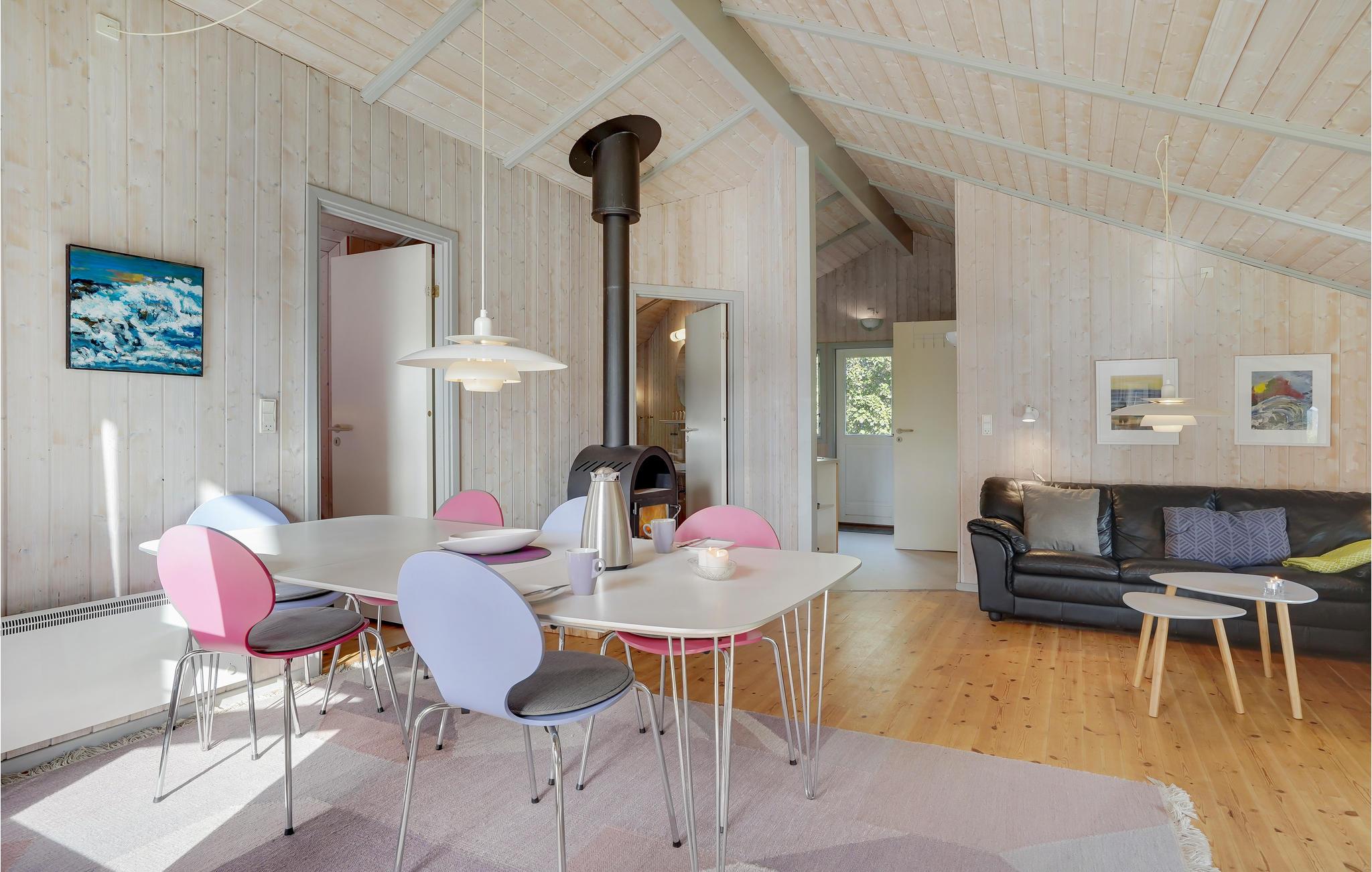 Dit mooie vakantiehuis ligt in een prachtige natuurlijke omgeving en niet ver van het strand. Het huis is ontworpen met veel comfort voor het hele gezin, wat voor een fijne vakantiesetting moet zorgen. Er is onder andere een badkamer met een 2-persoons whirlpool en toegang tot de sauna. Na een lange wandeling op het strand raden we je aan om hier te ontspannen. Of maak het jezelf echt comfortabel in de woonkamer met houtkachel. Daarvoor ligt het overdekte terras, en niet ver van het huis heb je een bosspeeltuin. Er is een vismeer op loopafstand. Er zijn veel wandelpaden in de omgeving.