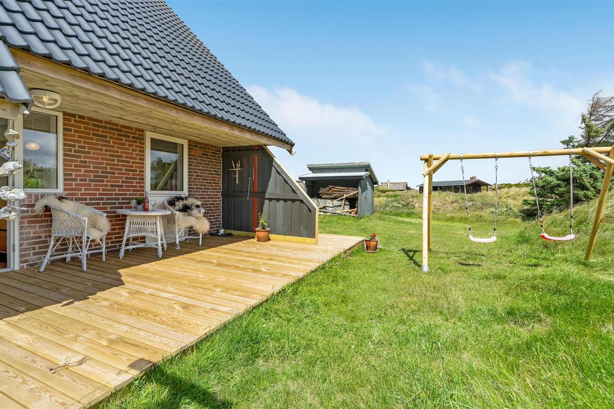 Vlakbij het water in het prachtige natuurgebied Grærup wacht dit mooie zomerhuis op je voor een ontspannen vakantie. Het huis heeft een goede woonkamer met een aangrenzende keuken met een houtkachel. Op de eerste verdieping zijn er 3 goede slaapkamers, waarvan één met een balkon met een prachtig uitzicht op de omgeving. Grærup is een prachtig natuurgebied waar de huizen omgeven zijn door groen, de lucht lekker fris is en je heerlijk kunt fietsen en wandelen.