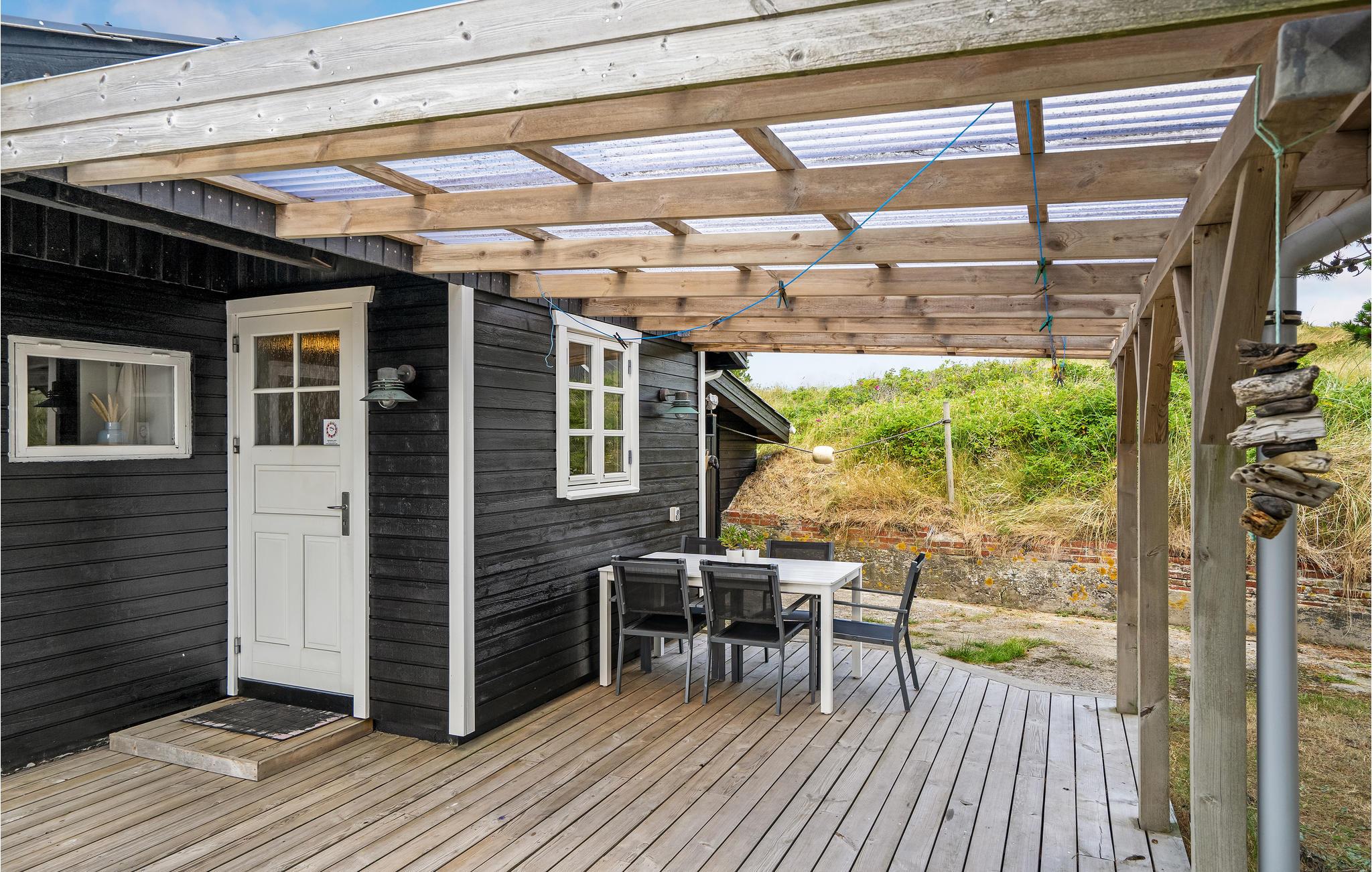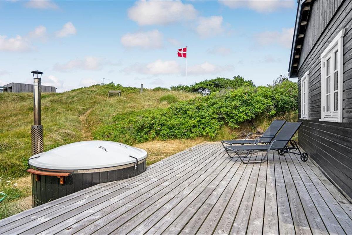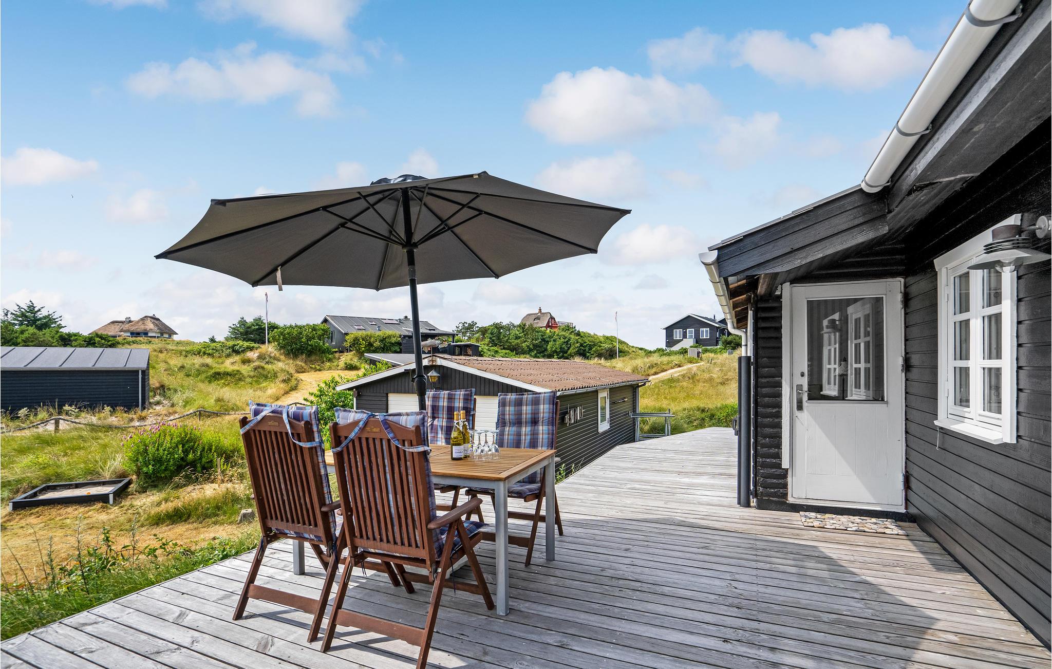 Zeer mooi vakantiehuis op een kleine duinheuvel midden in Grærup Strand. Grærup Strand is een ongelooflijk gezellige en mooie natuurparel met een eigen zandstrand en een verscheidenheid aan natuurpaden. Het vakantiehuis is goed ingericht met een praktische keuken-woonkamer, goede slaapkamers en een mooie badkamer. De gaus is omgeven door verschillende leuke, deels overdekte terrassen. Neem uw fiets en wandelschoenen mee, want er zijn hier mooie natuurpaden, evenals een fietspad naar Vejers Strand in het zuiden en Henne Strand in het noorden. Er is ook een vismeer in de omgeving, maar een visvergunning is vereist (tegen betaling). Op korte afstand van het huis ligt het natuurreservaat Grærup Langsø, dat een rijke verscheidenheid aan vogels herbergt en een belangrijke rustplaats is voor trekvogels.