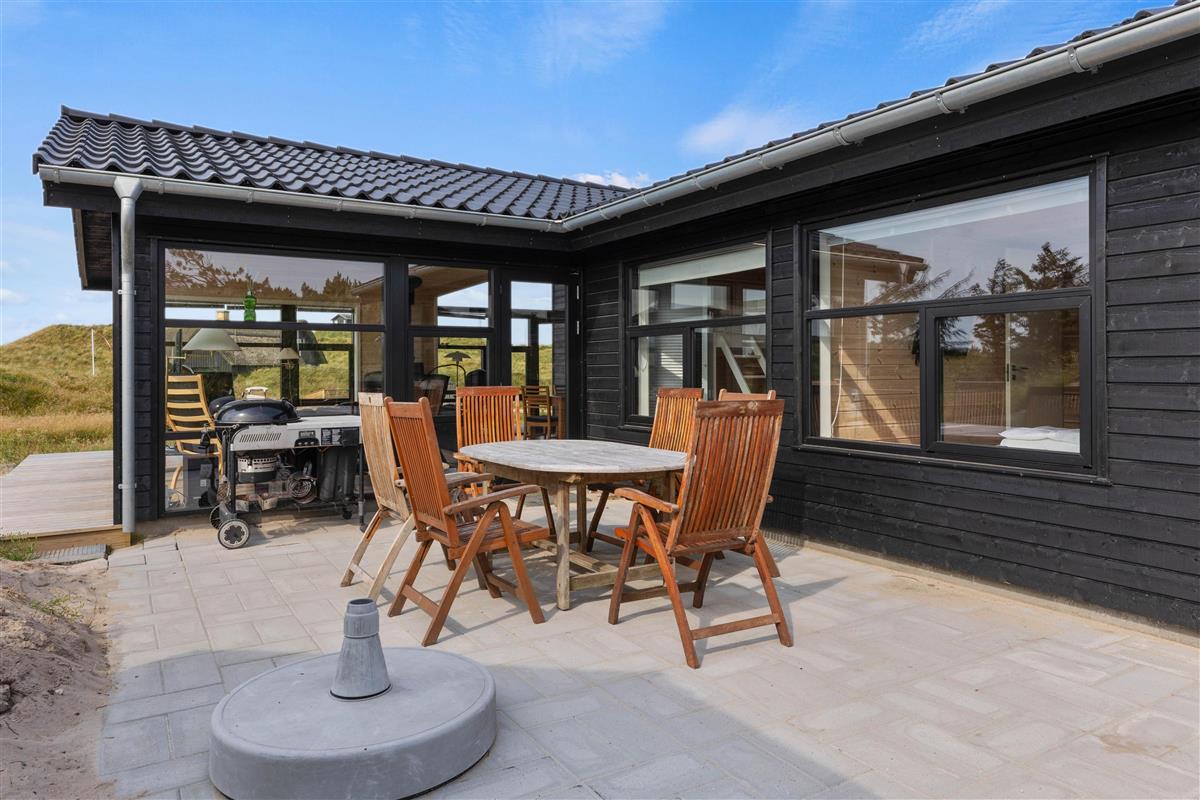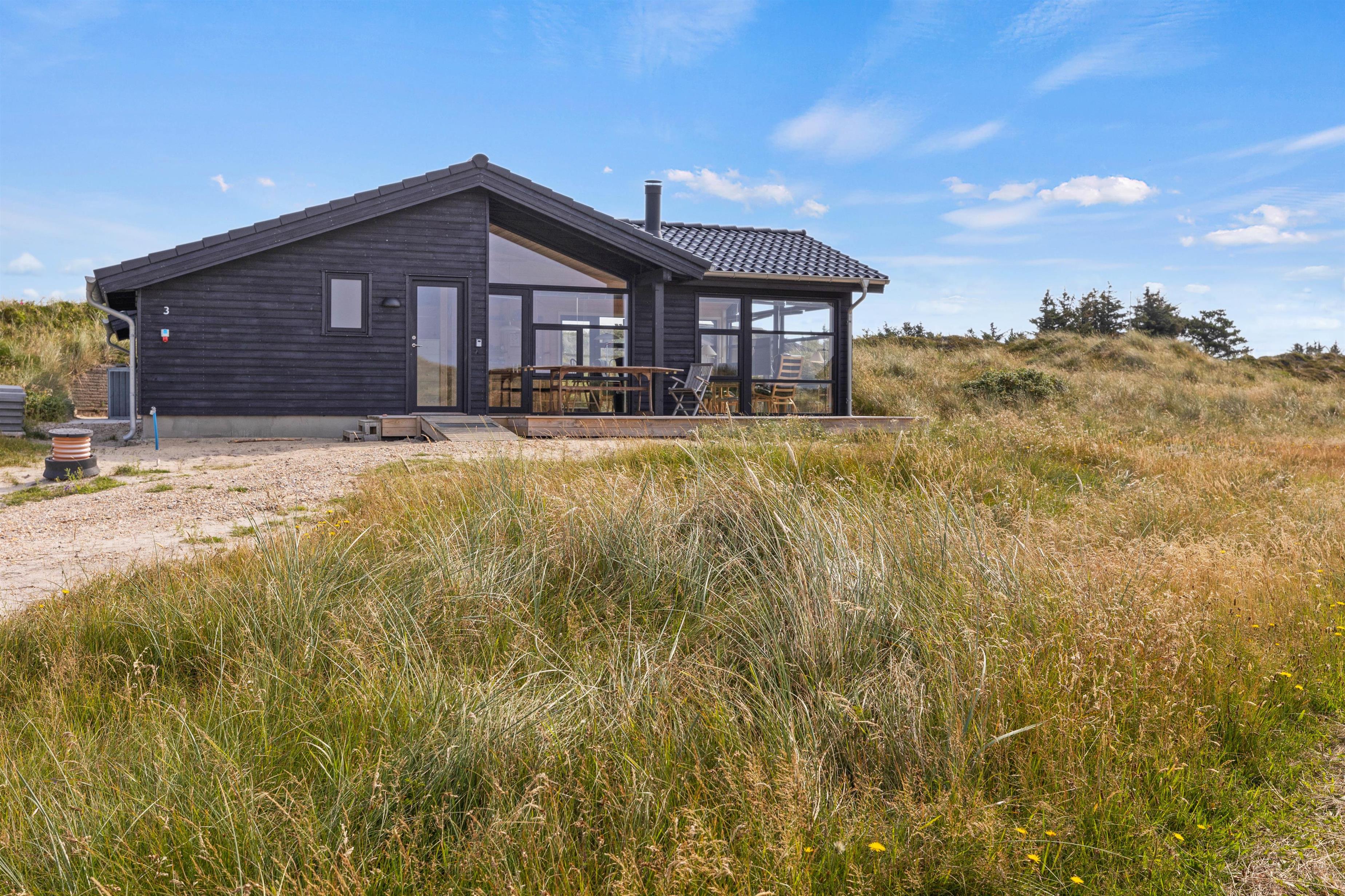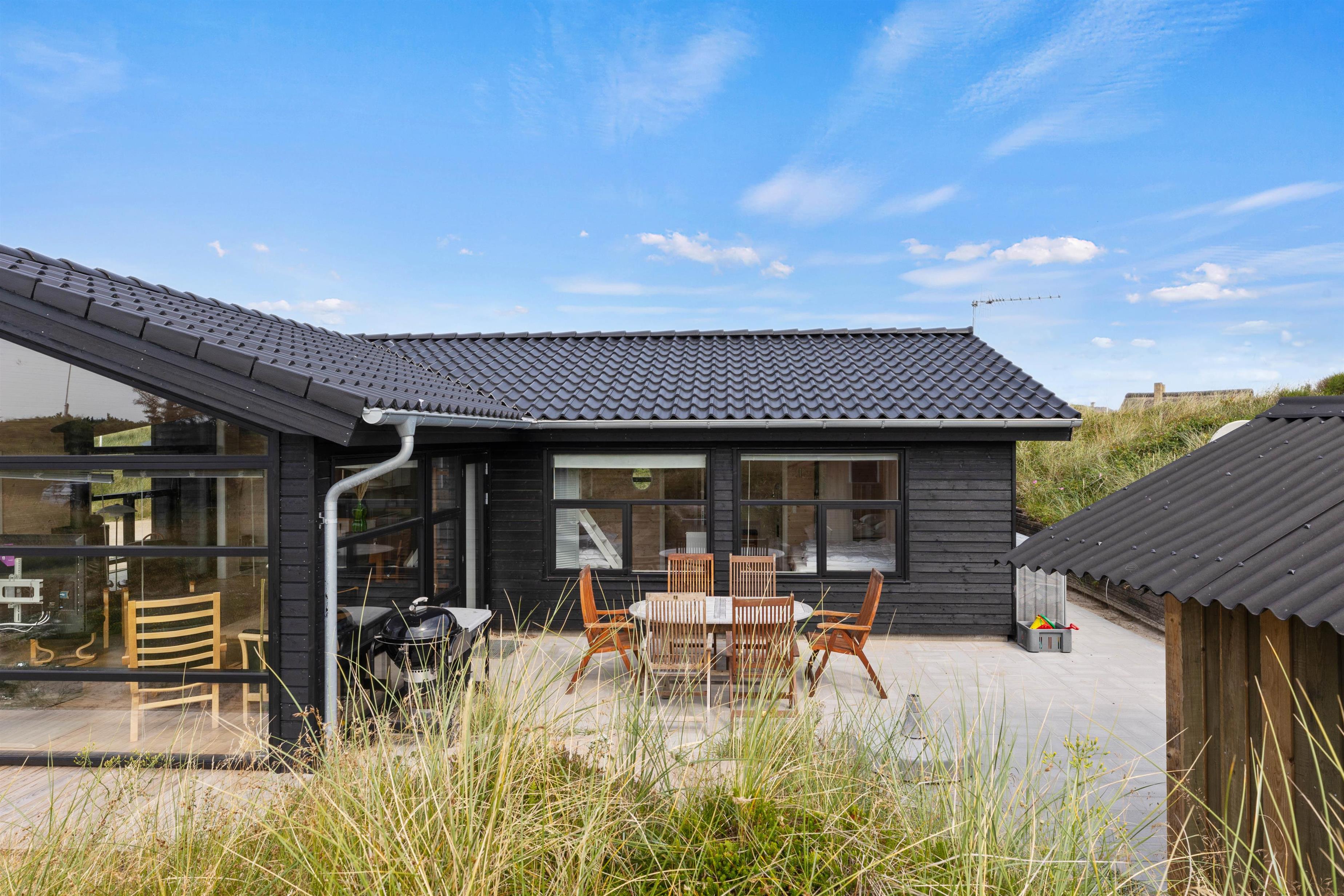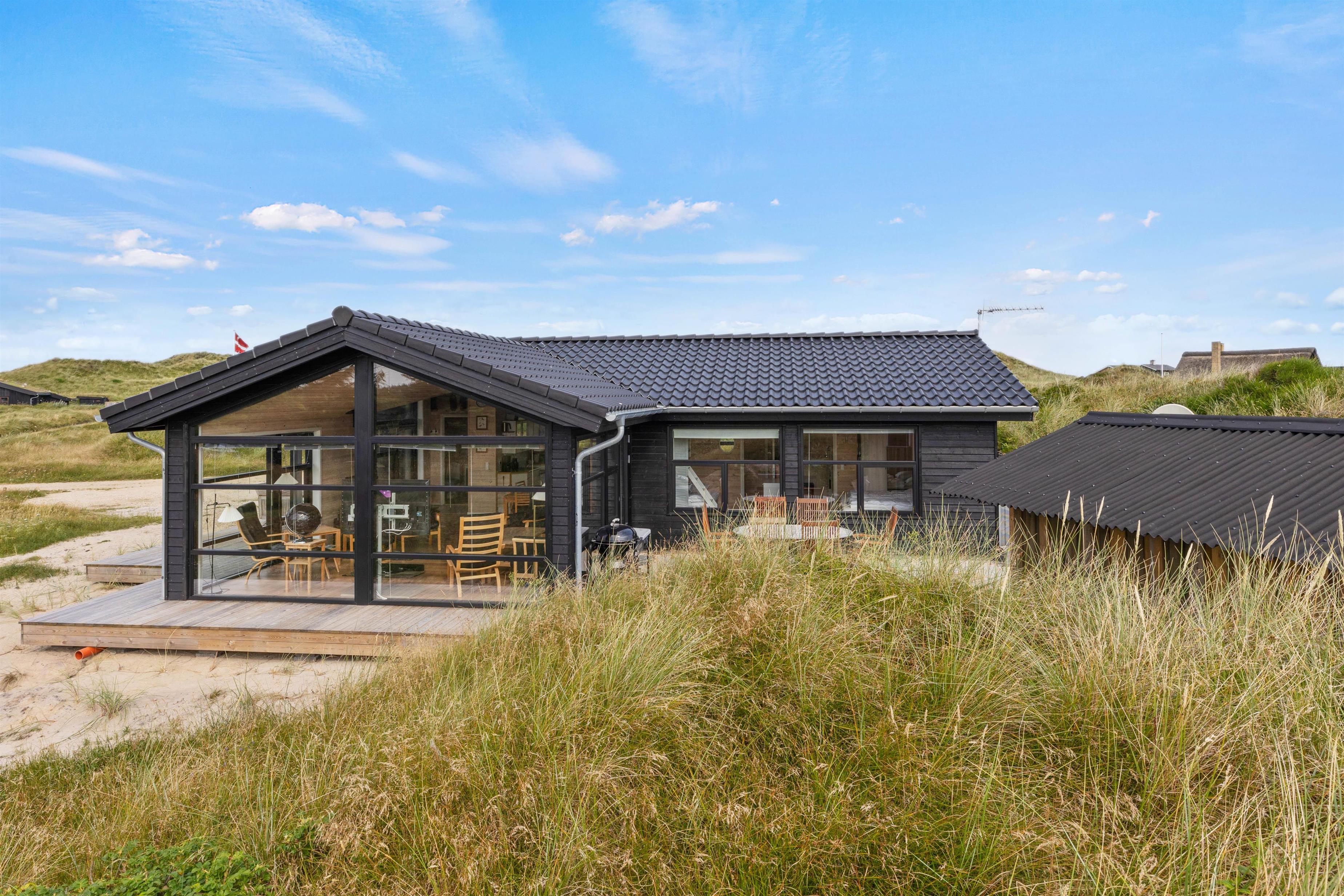 This typical Danish wooden house blends seamlessly with the uniquely beautiful nature of the Danish North Sea coast. Located at Storkenæbvej 3 in Grærup, this holiday home is not only exceptionally cosy but also close to the beach and Danish dune landscape. Up to 7 people and your dog can look forward to relaxation, tranquillity, and plenty of Danish hygge-style comfort.