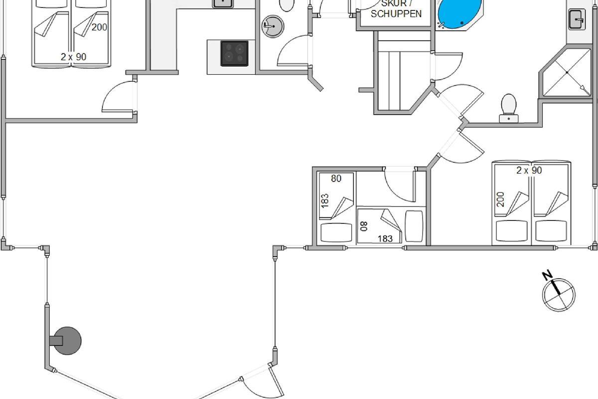 This cosy holiday home at Lyngvej 18 is situated in the peaceful and picturesque holiday region of Grærup Strand. The blue-painted wooden cladding exudes classic country house charm, whilst inside you'll find a wonderfully bright and personally furnished home with luxurious extras, including a sauna and hot tub! Your dog is also very welcome here.