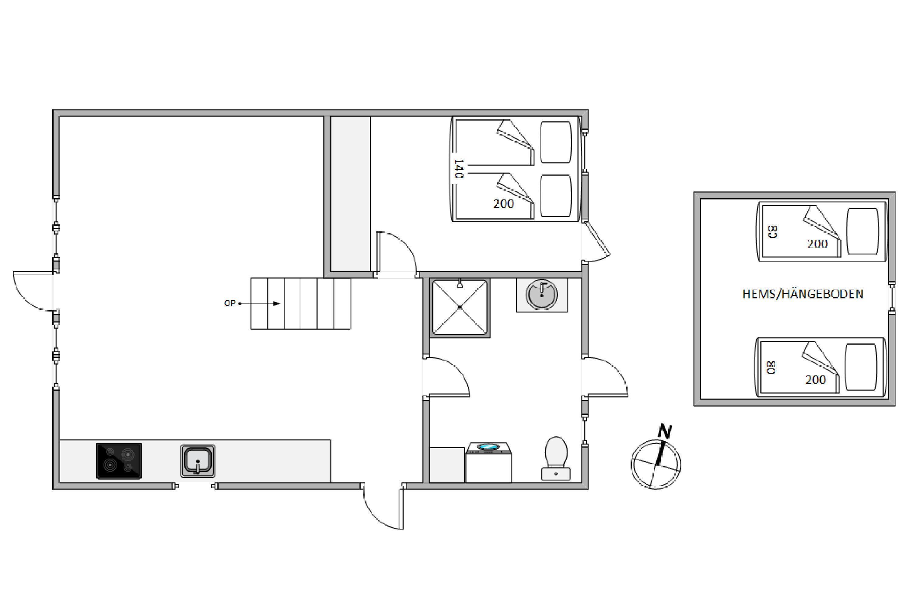 This cosy house radiates a pleasant atmosphere and accommodates up to 4 people. It's ideal for a small family or a romantic getaway for two. The bright, spacious living area with its well-equipped kitchen invites you to spend quality holiday time together. The high, bright ceiling and skylights make the interior feel much more spacious than the exterior suggests. Large windows flood the rooms with natural light. The bathroom was renovated in 2017.