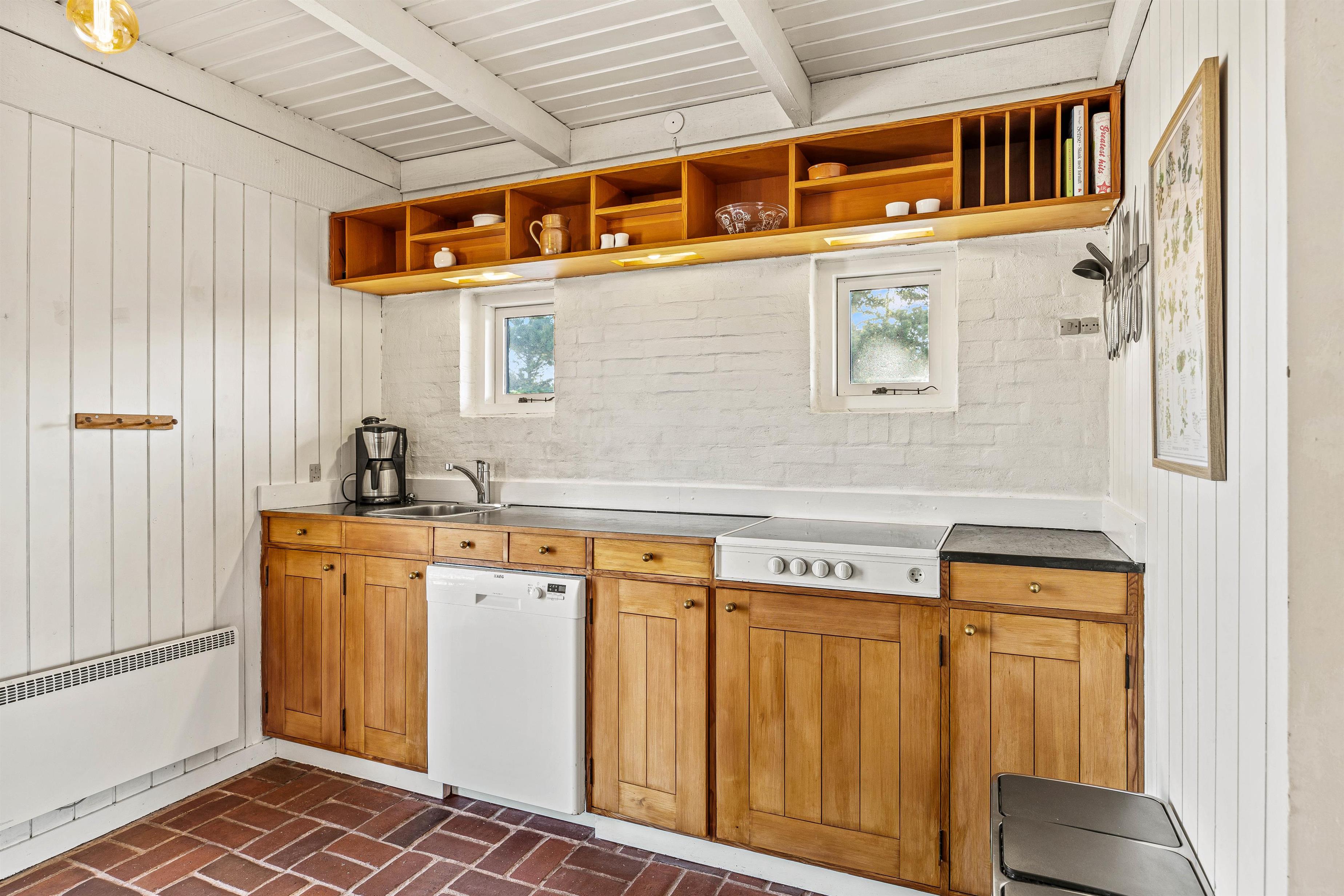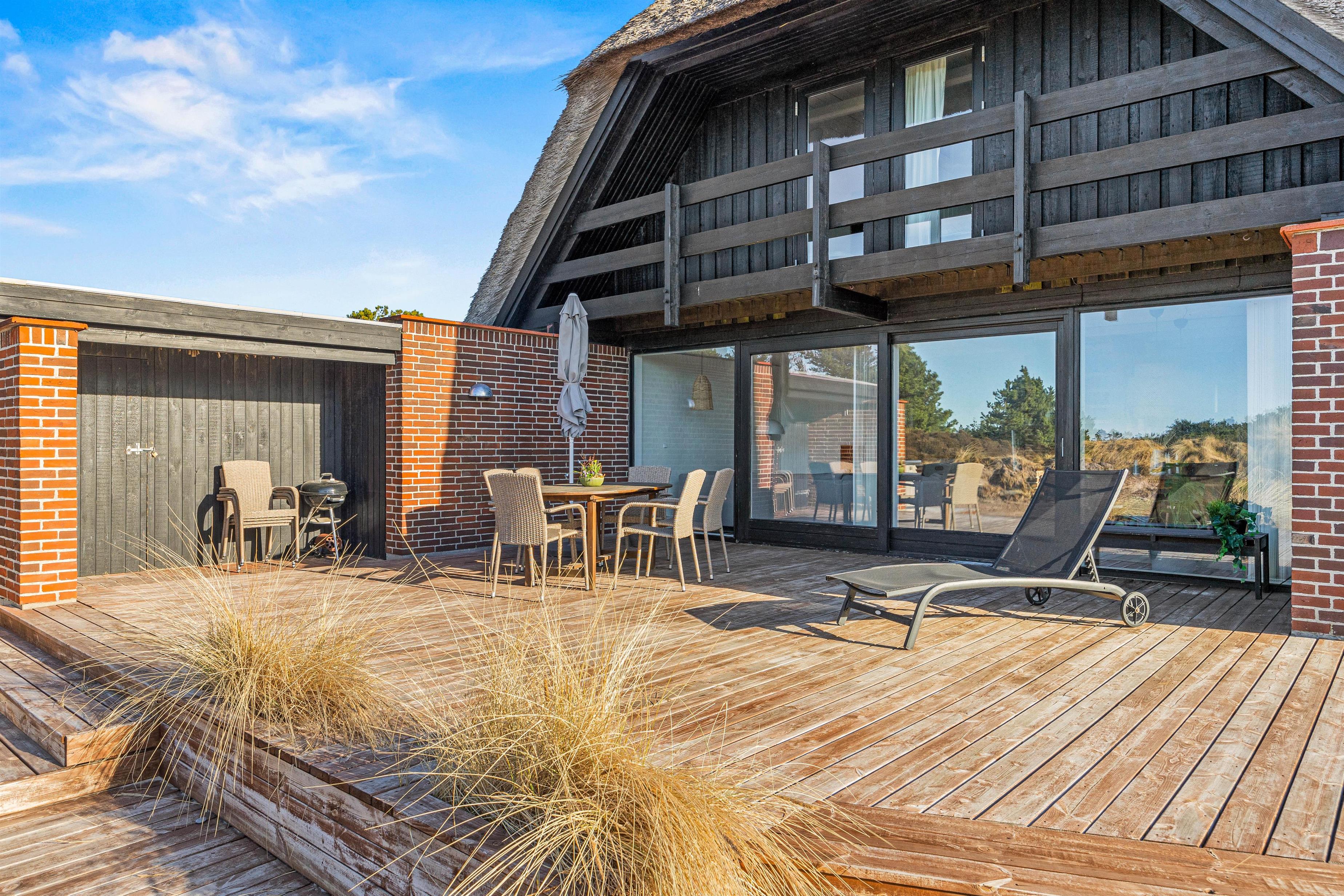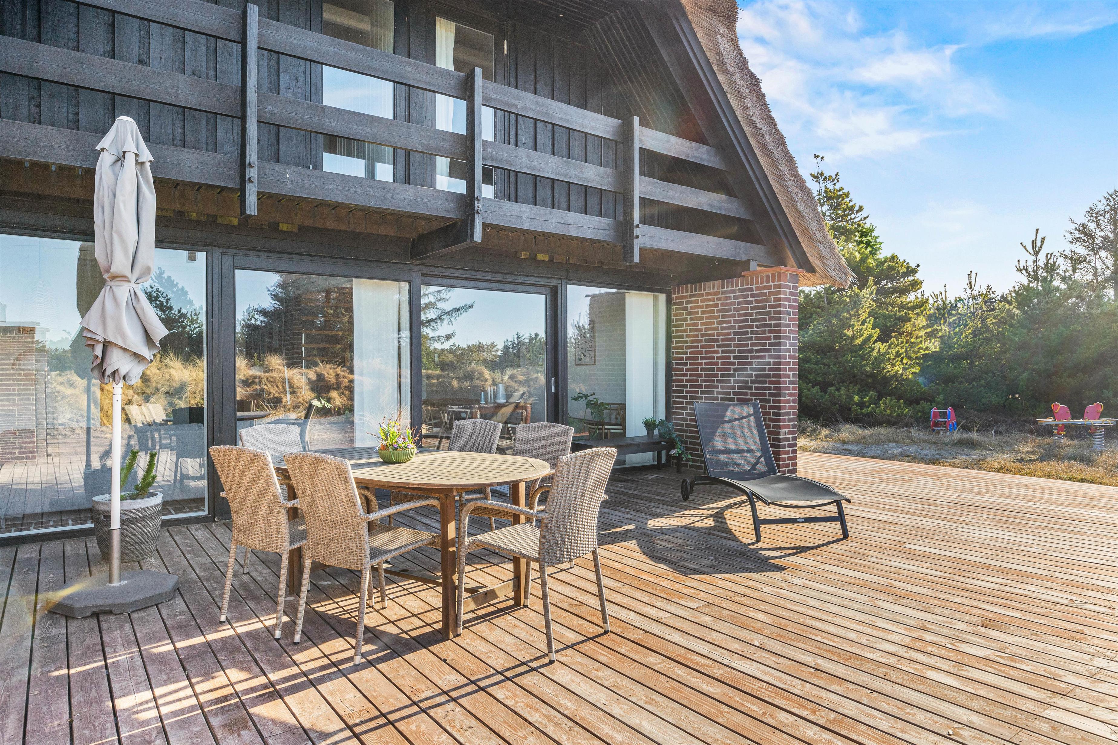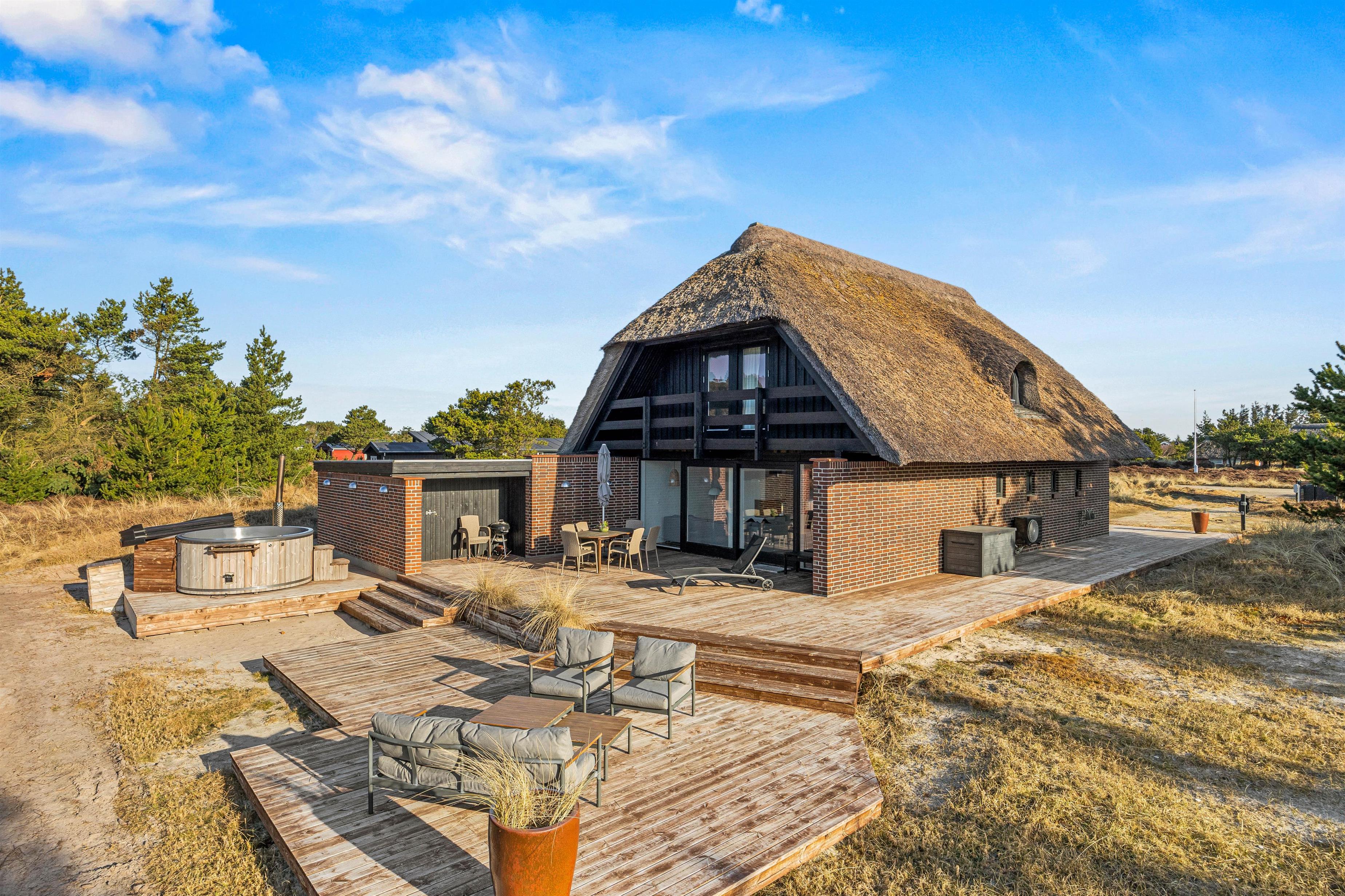 This solidly-built two-storey holiday home sits on an exceptionally large and beautiful natural plot in the peaceful, beach-close location of Grærup. Offering over 130 square metres of space, it comfortably accommodates up to 8 people and 2 dogs, with plenty of room for privacy.